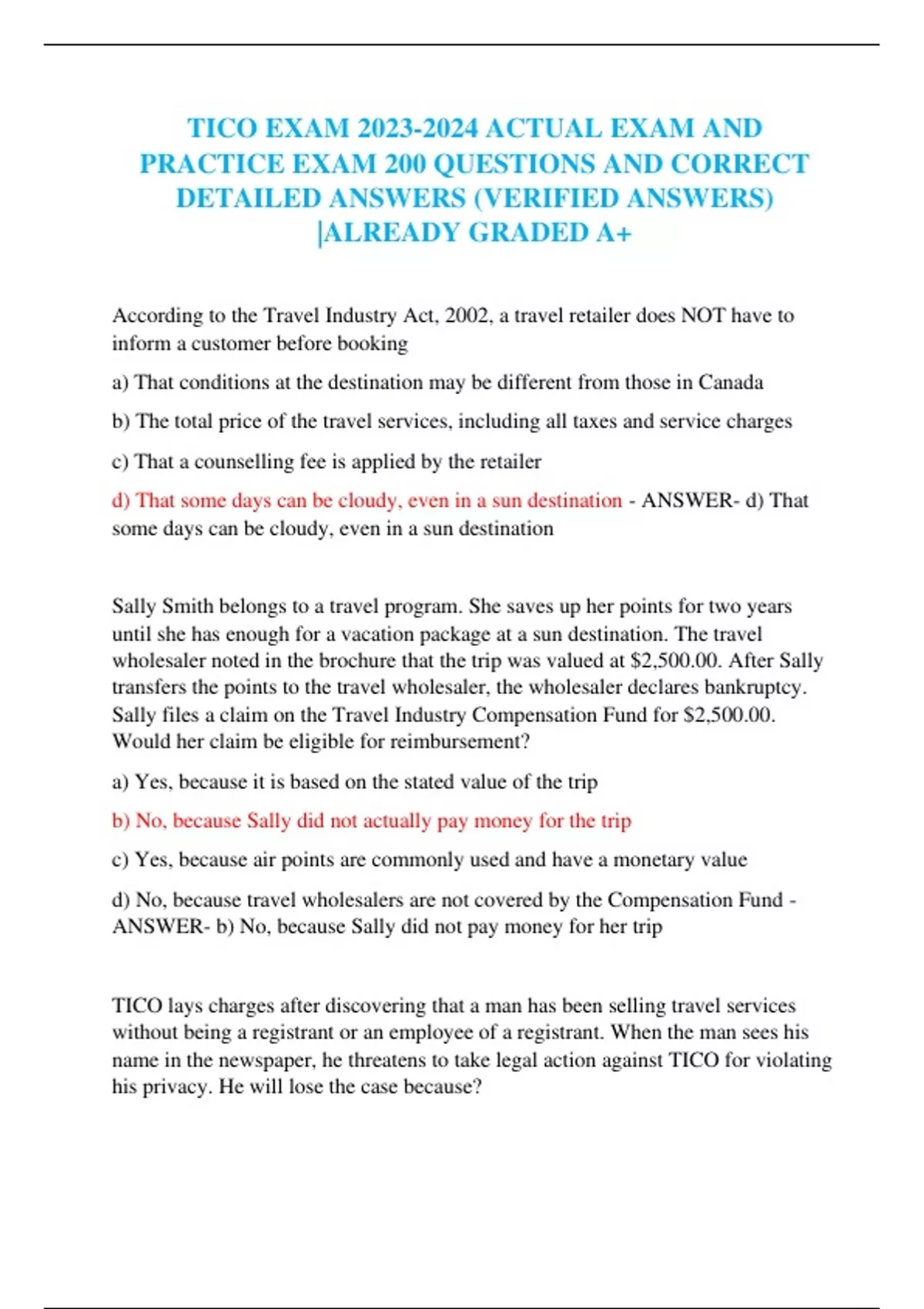 TICO EXAM ACTUAL EXAM AND PRACTICE EXAM 200 QUESTIONS AND CORRECT DETAILED ANSWERS (VERIFIED ANSWERS) |ALREADY GRADED A+