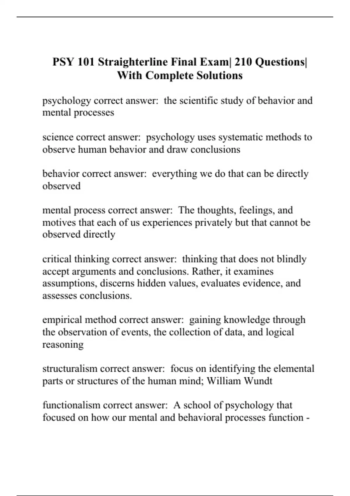 PSY 101 Straighterline Final Exam| 210 Questions| With Complete Solutions