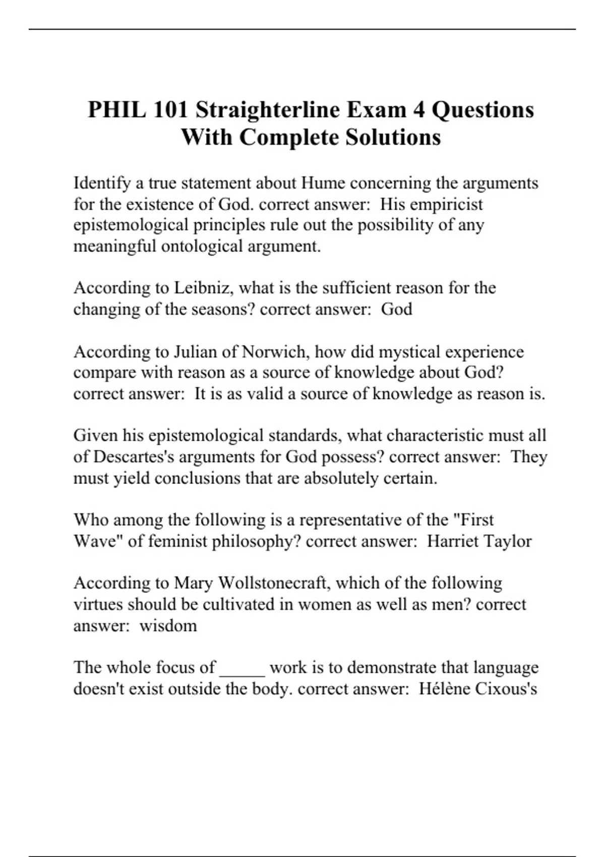 PHIL 101 Straighterline Exam 4 Questions With Complete Solutions