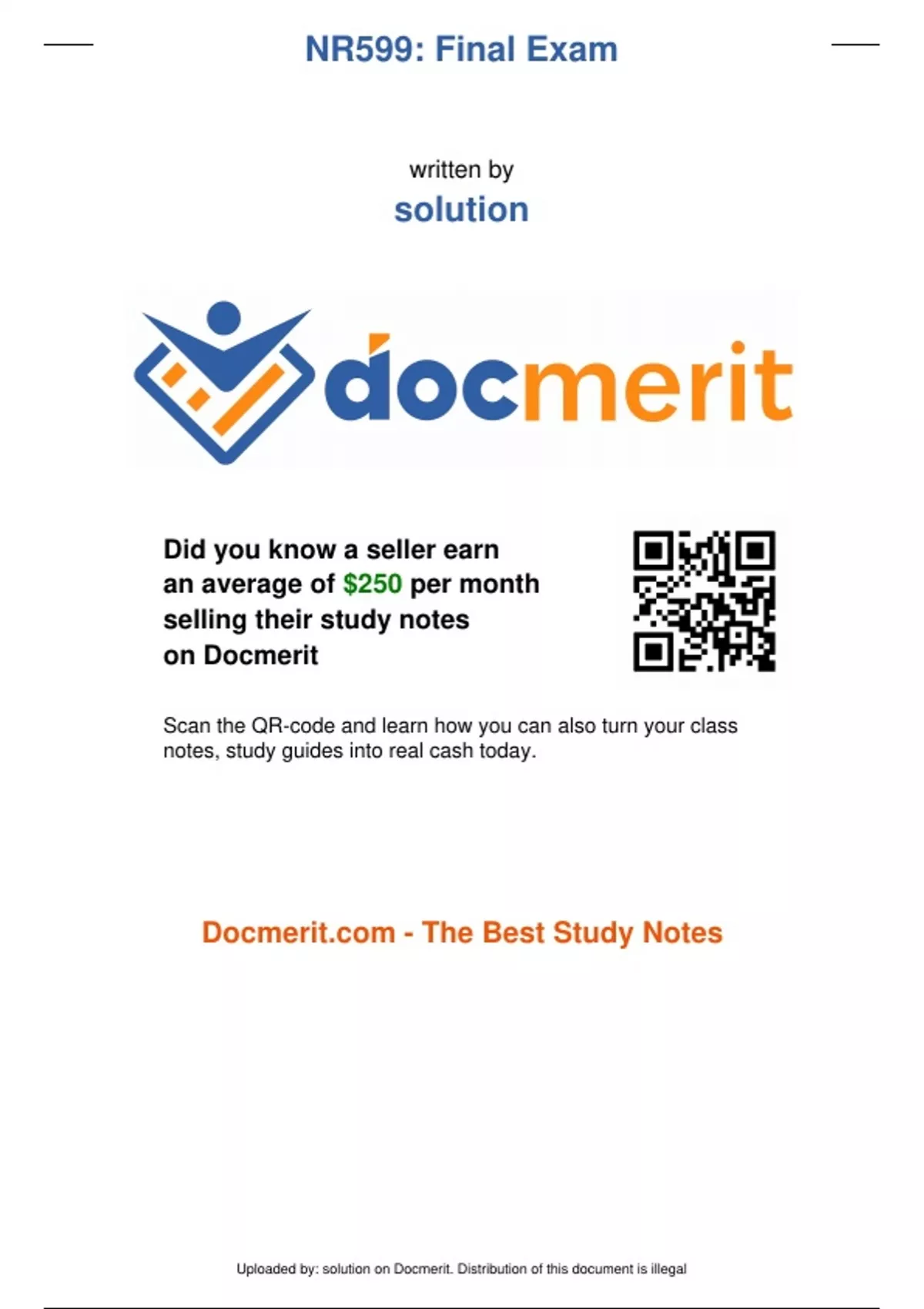Exam of 6 pages for the course NR599 at NR599 (NR599: Final Exam)