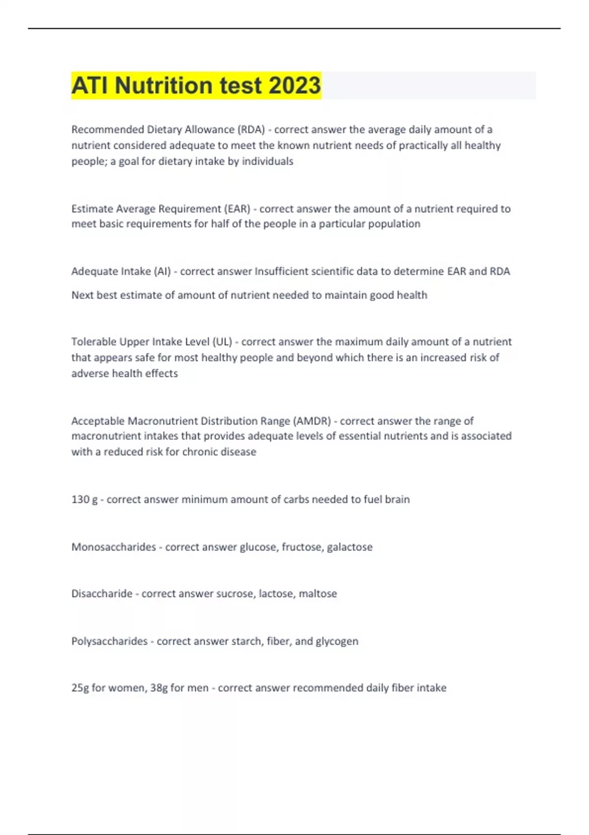 ATI Nutrition test 2023/34 update with 1005 complete solutions already graded A