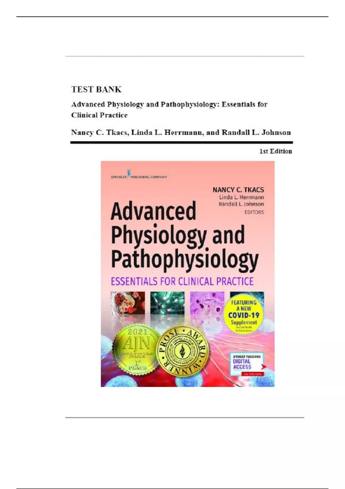 Test Bank For Advanced Physiology and Pathophysiology: Essentials for Clinical Practice, 1st Edition (Nancy Tkacs, 2021)/ Chapter 1-17 Guide