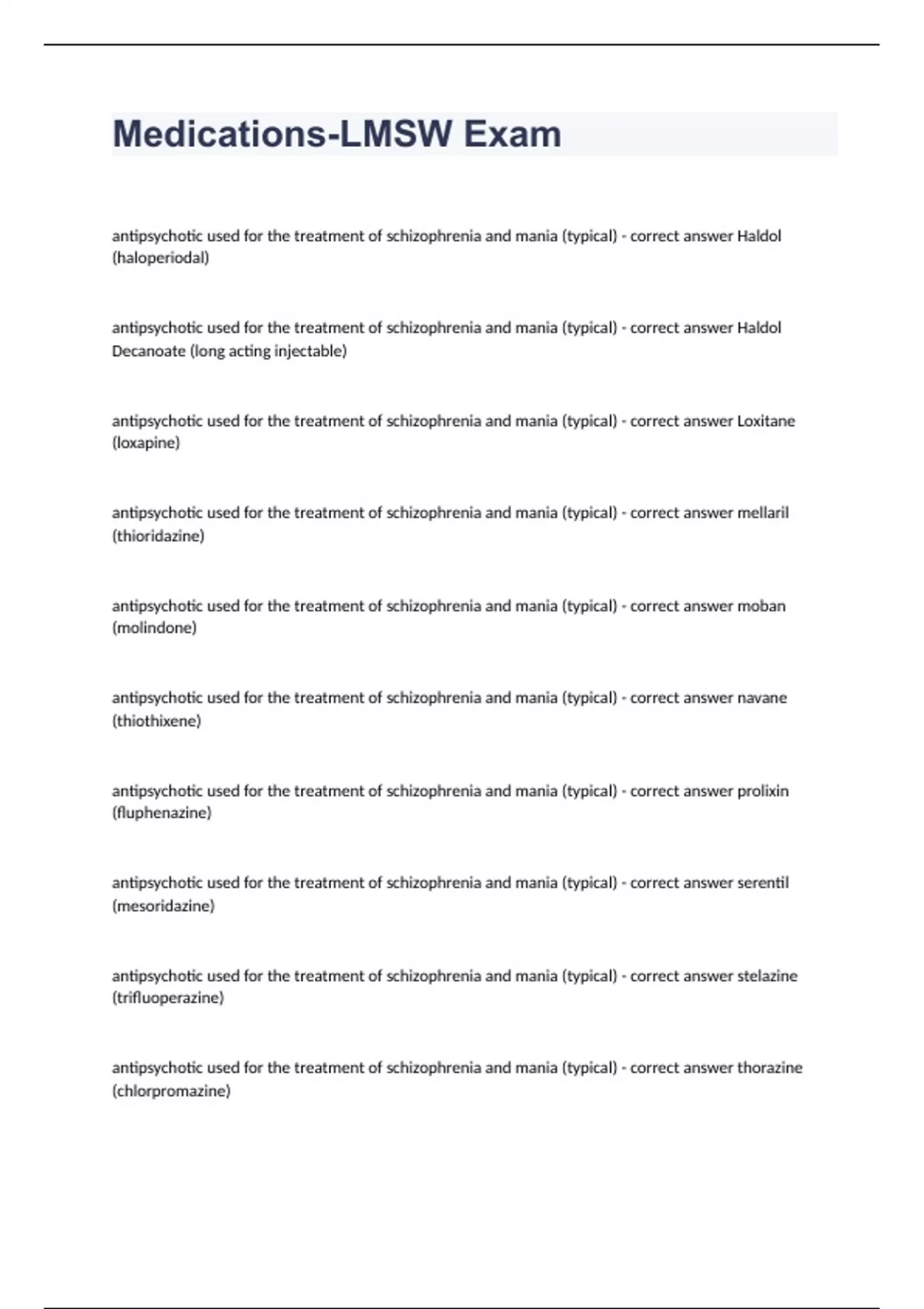 Medications-LMSW Exam question n answers graded A+ 2023