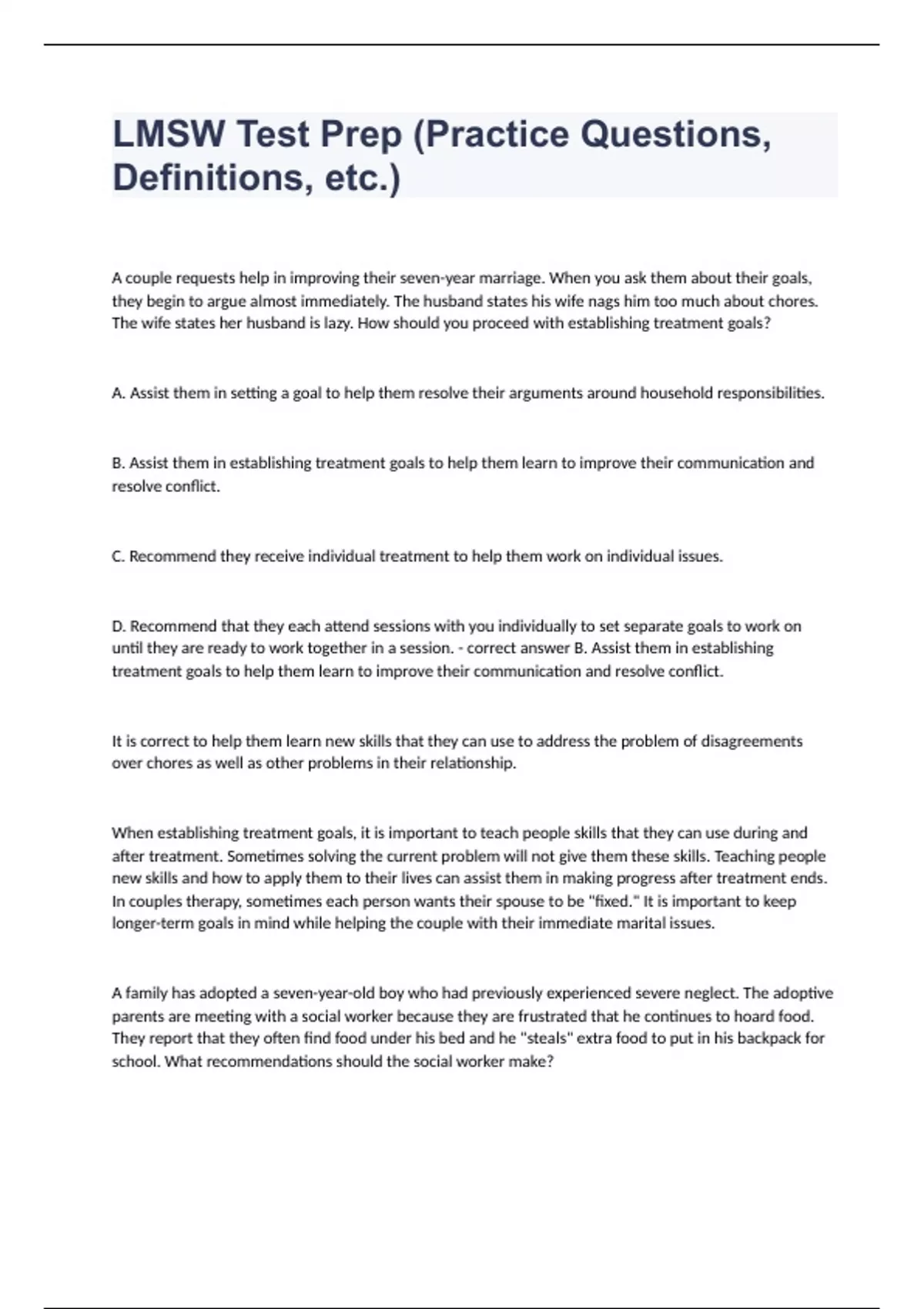 LMSW Test Prep (Practice Questions, Definitions, etc.) 2023 passed
