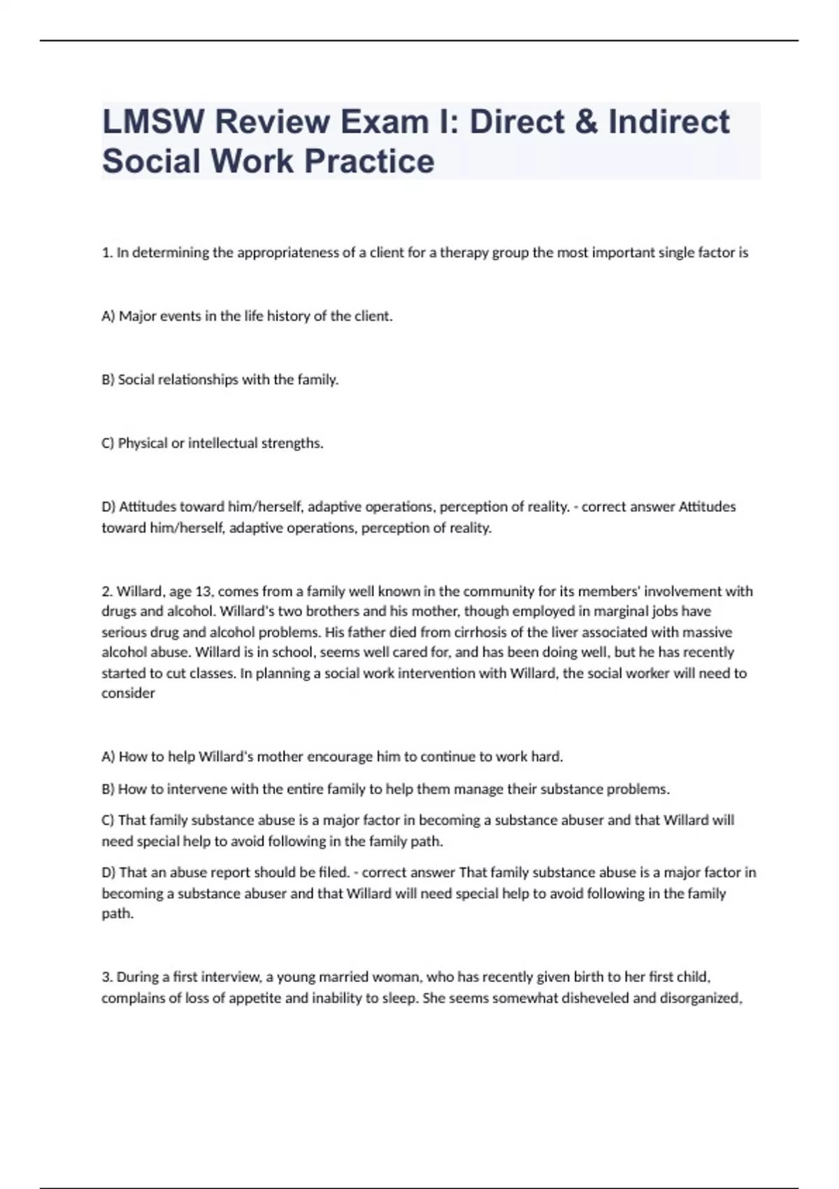 LMSW Review Exam I Direct & Indirect Social Work Practice 2023 passed
