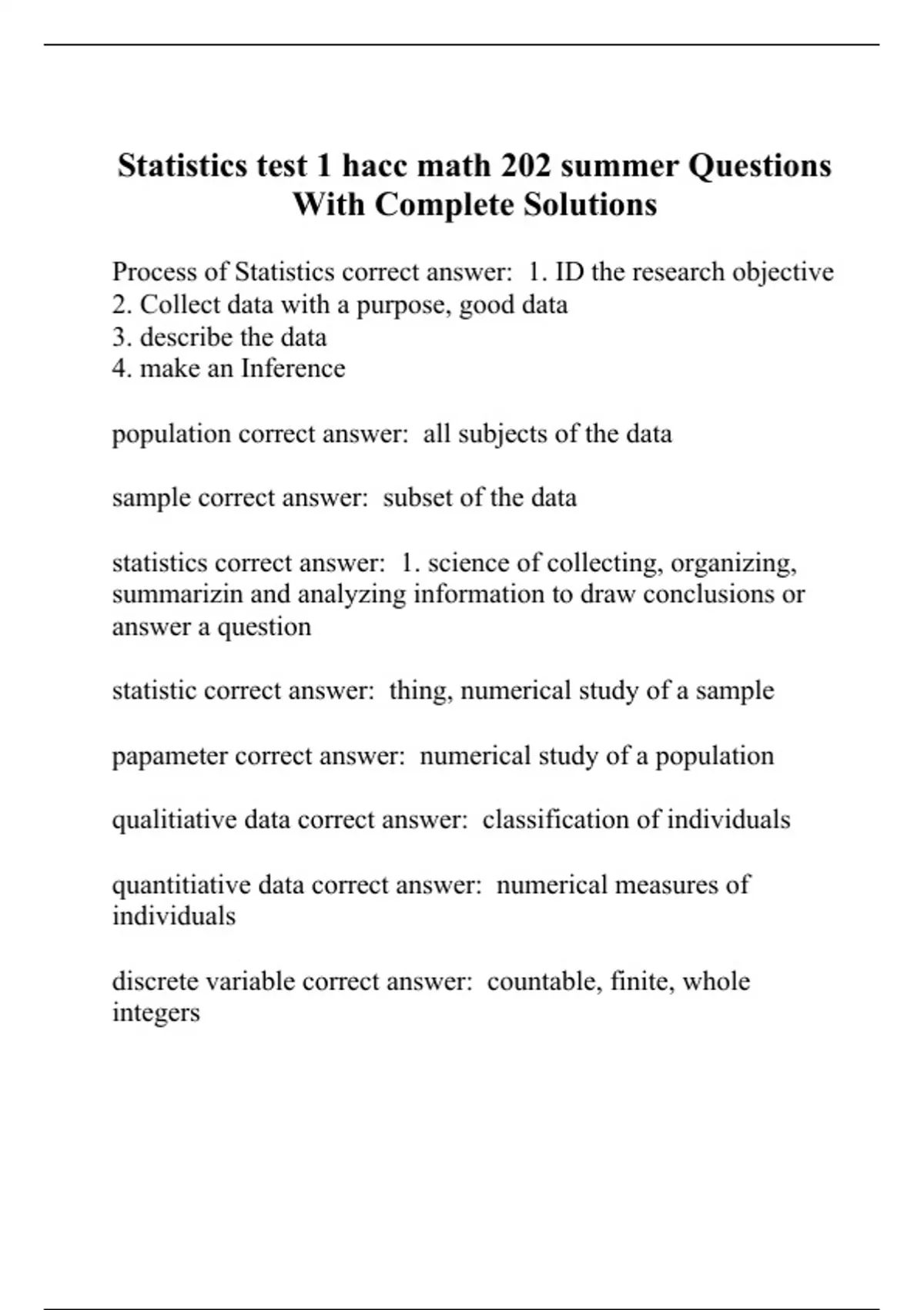 Statistics test 1 hacc math 202 summer Questions With Complete Solution