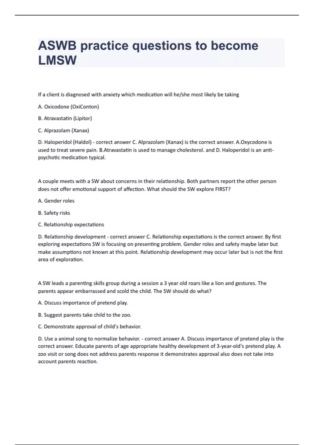 ASWB practice questions to become LMSW question well answered rated A+ 2023