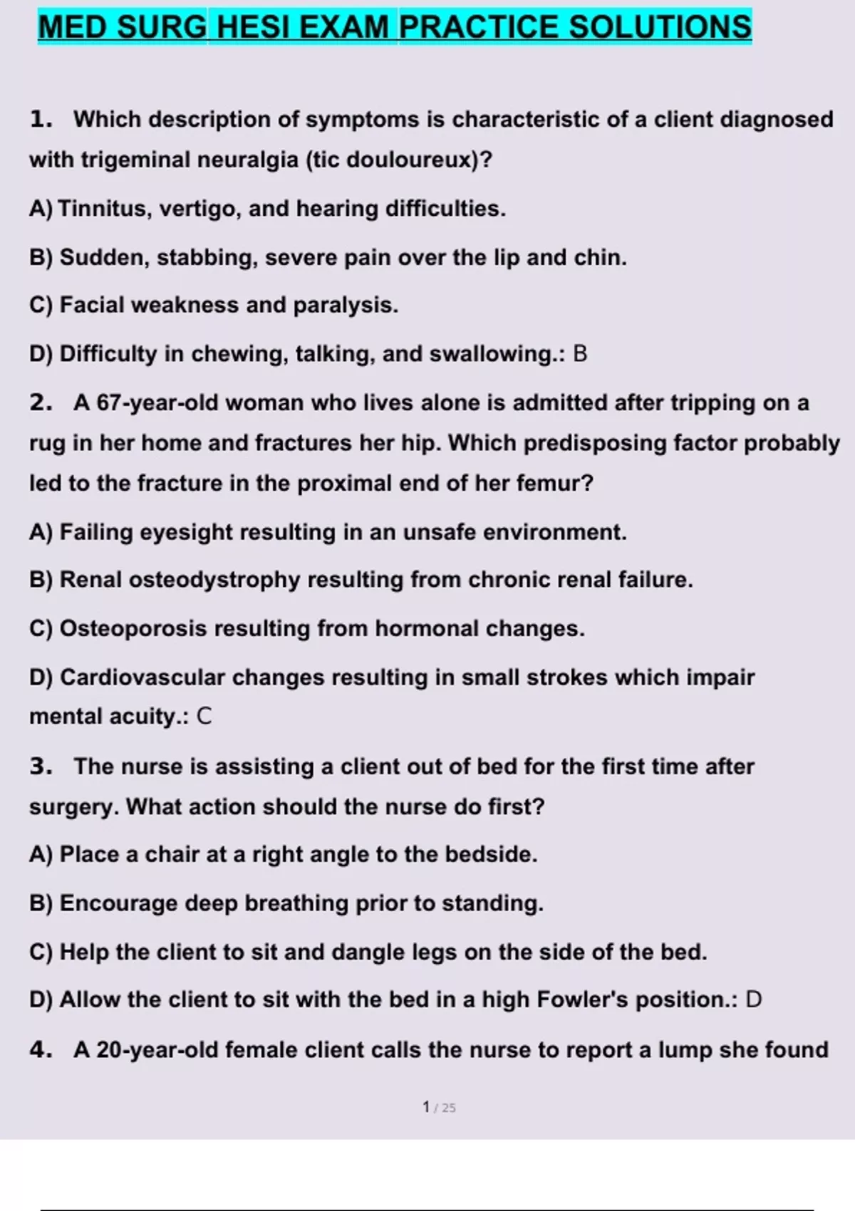 HESI MED SURG EXAM PRACTICE SOLUTIONS QUESTIONS AND ANSWERS A+ RATED