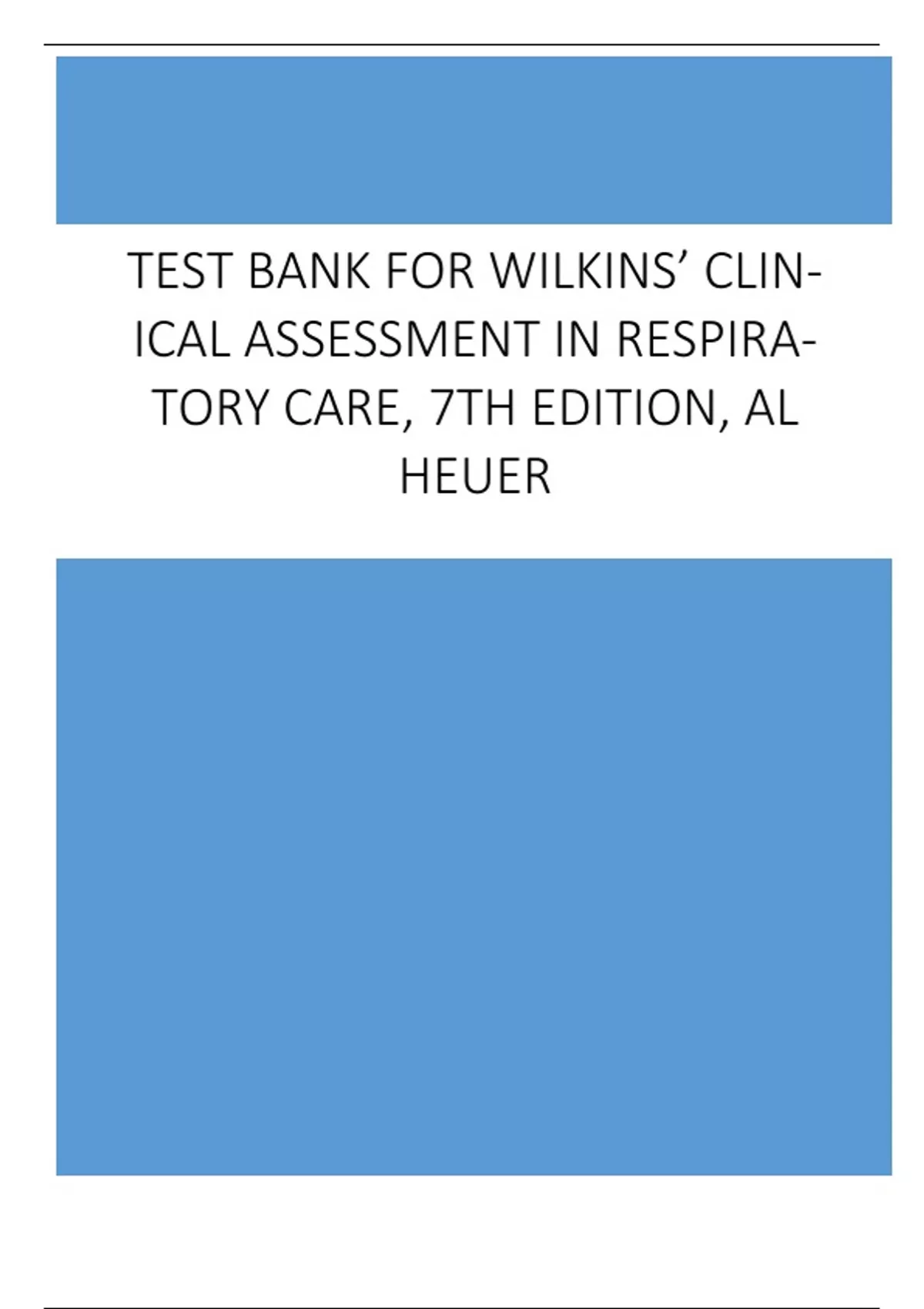 Test Bank for Wilkins’ Clinical Assessment in Respiratory Care, 7th Edition, Al Heuer