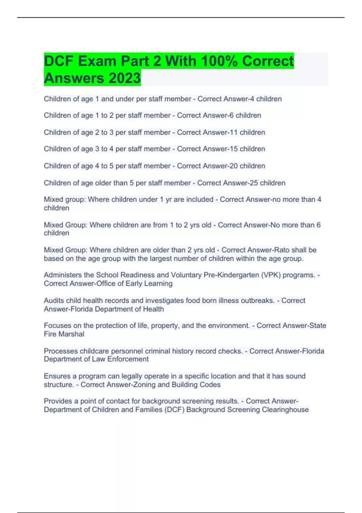 DCF Exam Part 2 With 100% Correct Answers 2023