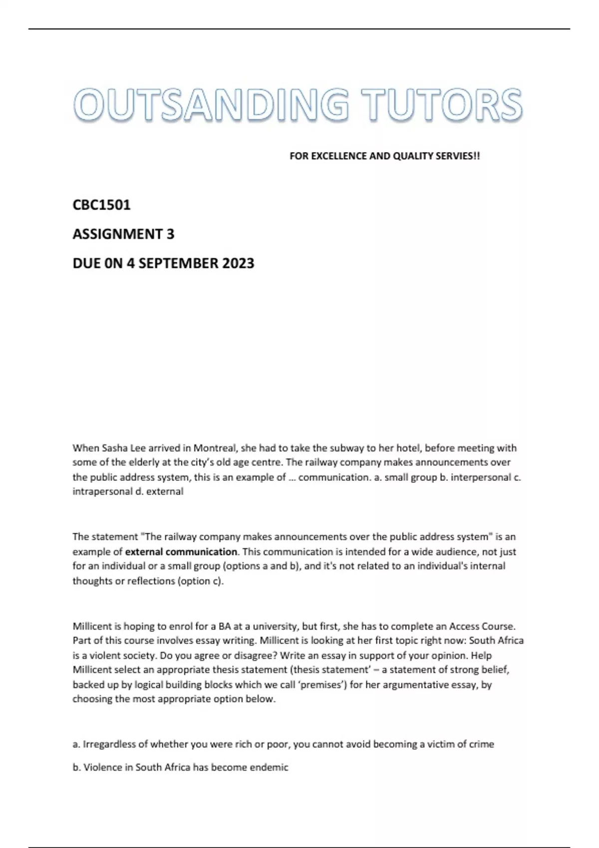 This document contains the solutions to CBC1501 Assignment 3 due on 5 September 2023, using this document will ensure that you get a guaranteed 90% plus marks.