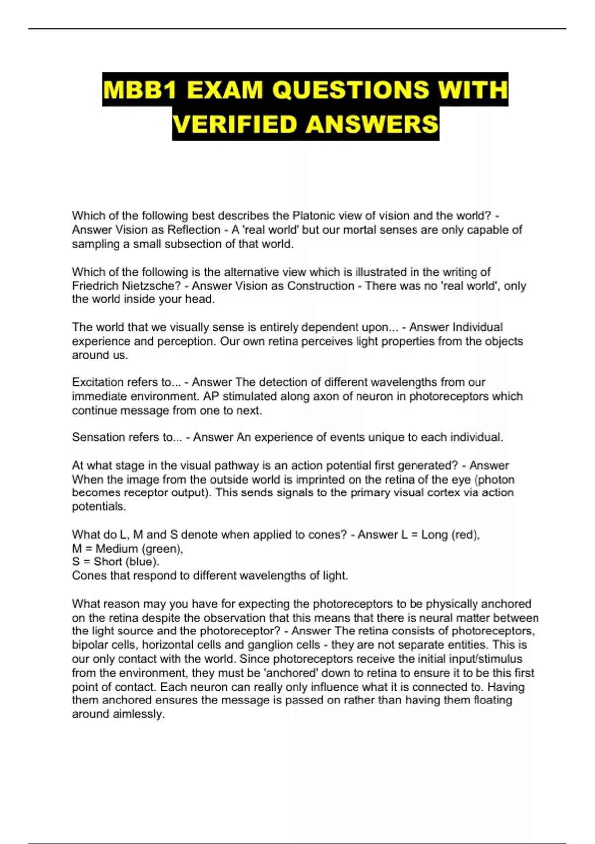 mbb1 exam questions with verified answers