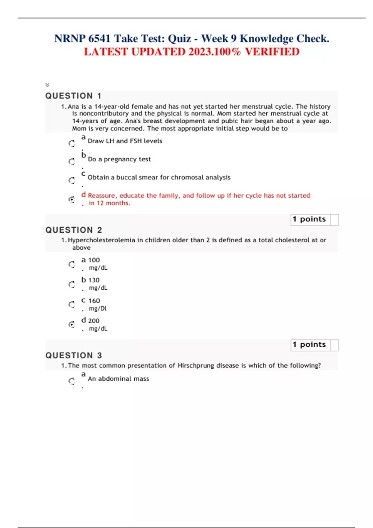 NRNP 6541 Take Test: Quiz - Week 9 Knowledge Check. LATEST UPDATED 2023.100% VERIFIED