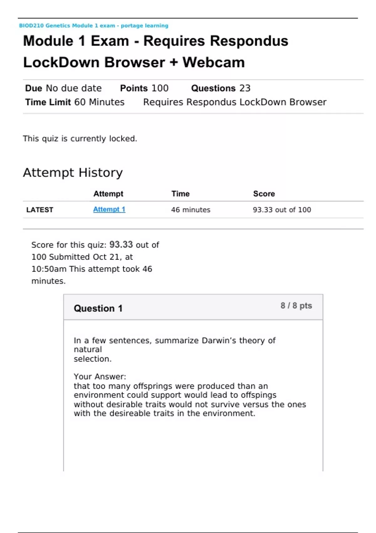 biod210 genetics module 1 exam portage learning