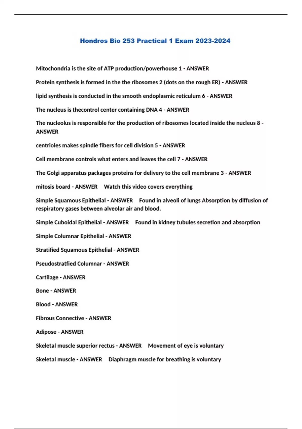 Hondros Bio 253 Practical 1 Exam ...
