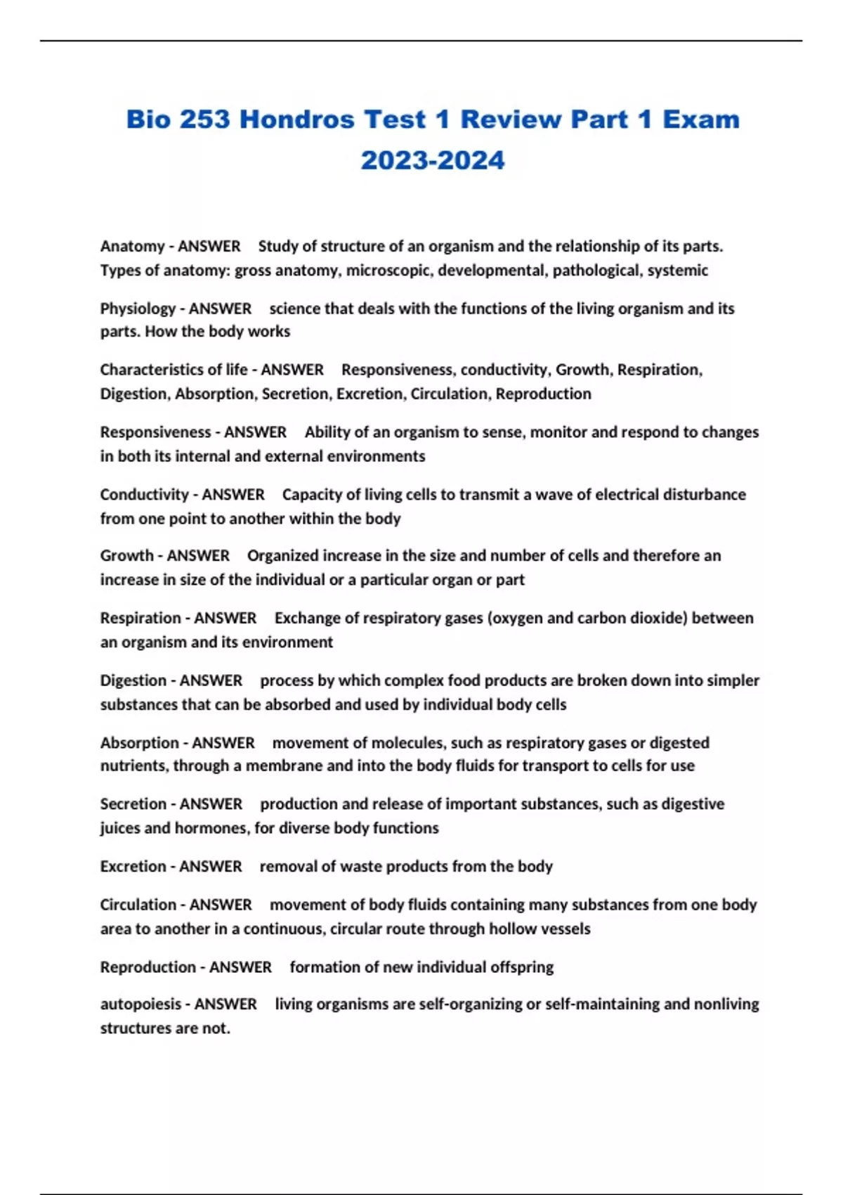 bio 253 hondros test 1 review part 1 exam 2023 202