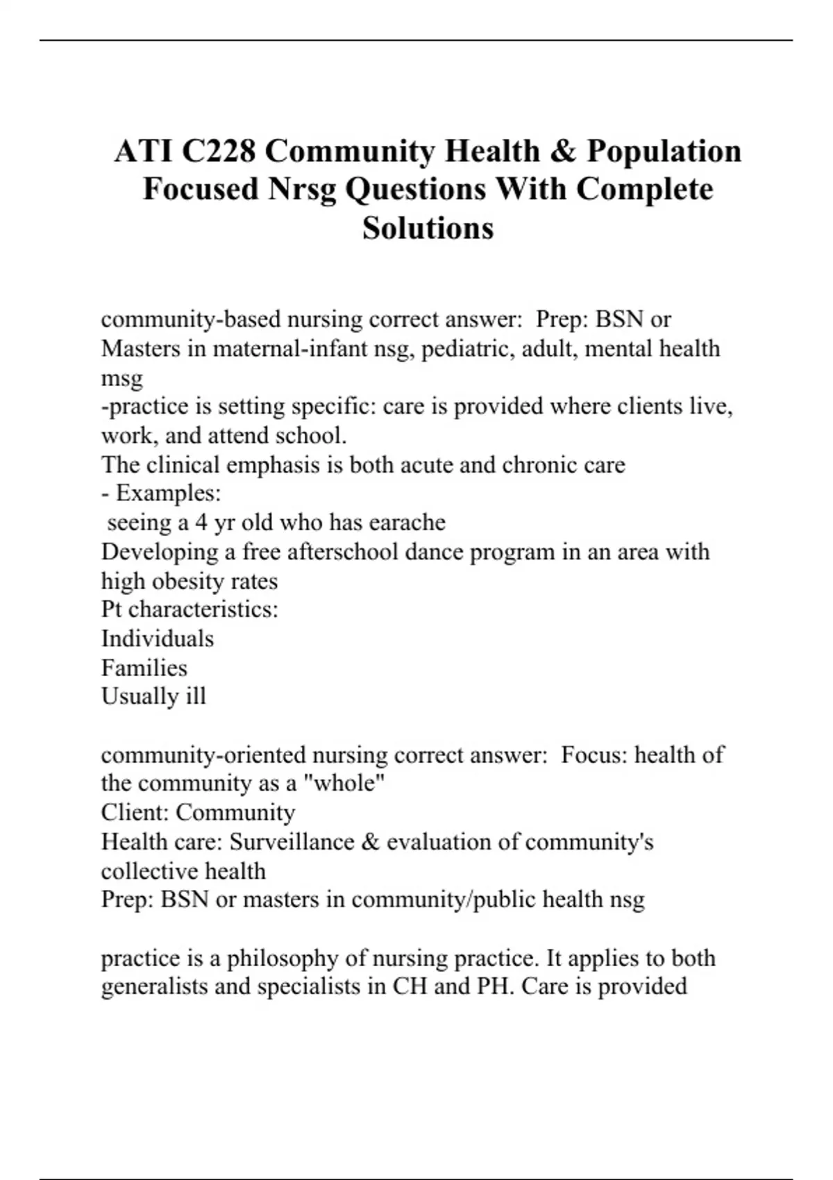 ATI C228 Community Health & Population Focused Nrsg Questions With Complete Solutions