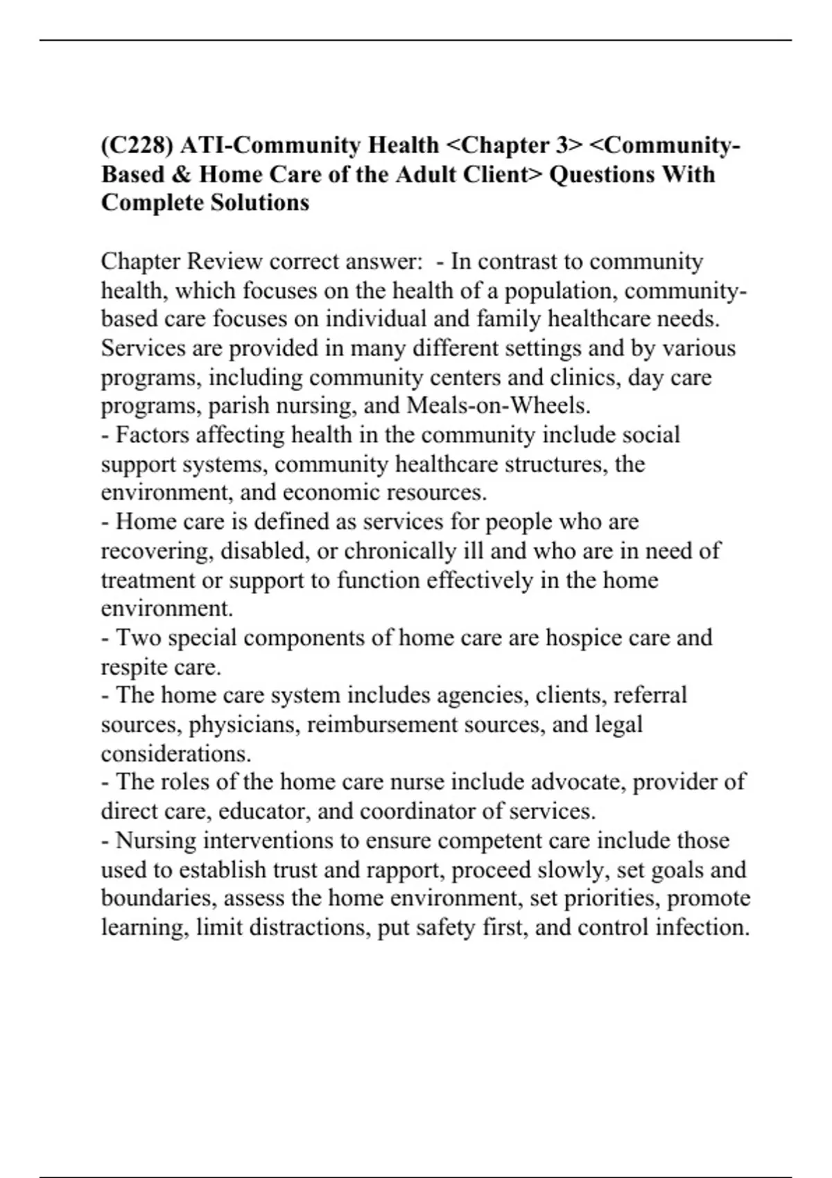 (C228) ATI-Community Health <Chapter 3> <Community-Based & Home Care of the Adult Client> Questions With Complete Solutions