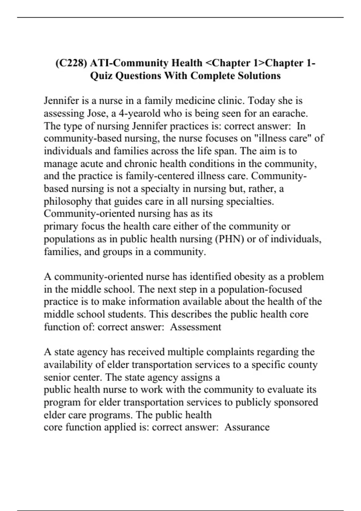 (C228) ATI-Community Health <Chapter 1>Chapter 1- Quiz Questions With Complete Solutions