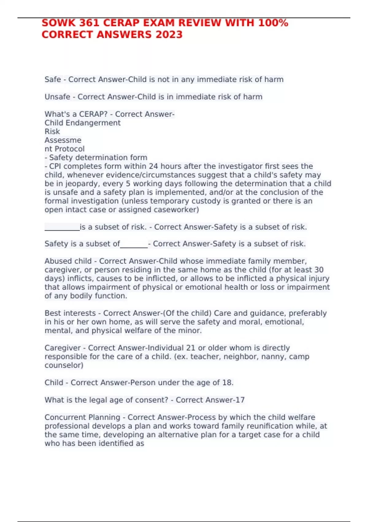 SOWK 361 CERAP EXAM REVIEW WITH 100% CORRECT ANSWERS 2023