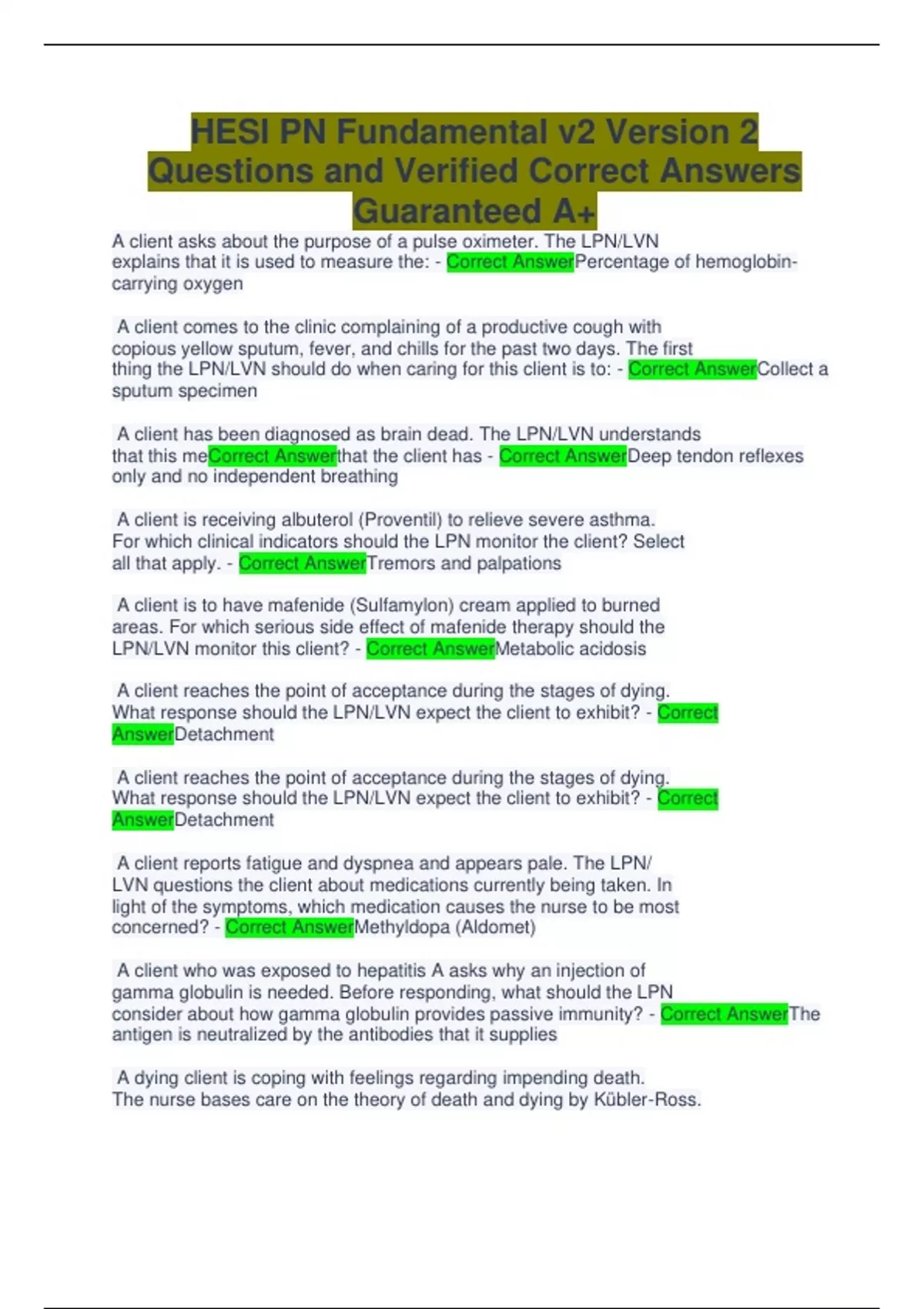 HESI PN Fundamental v2 Version 2 Questions and Verified Correct Answers Guaranteed A+