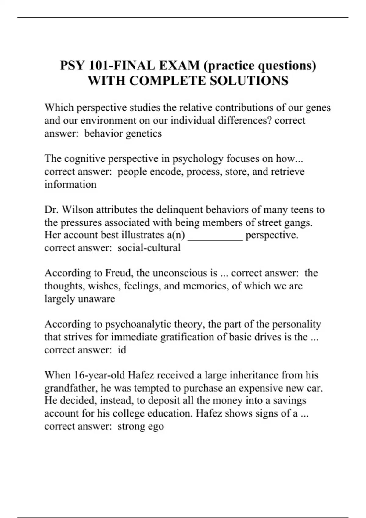 psy 101 final exam practice questions with compl