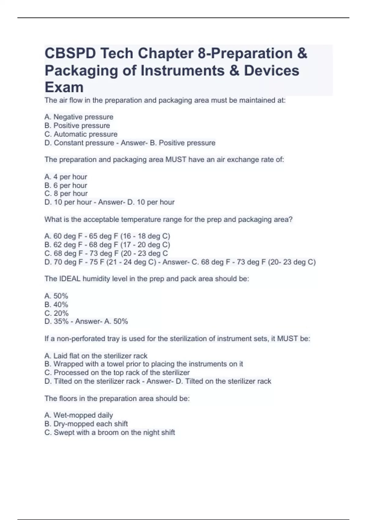 CBSPD Tech Chapter 8-Preparation & Packaging of Instruments & Devices Exam