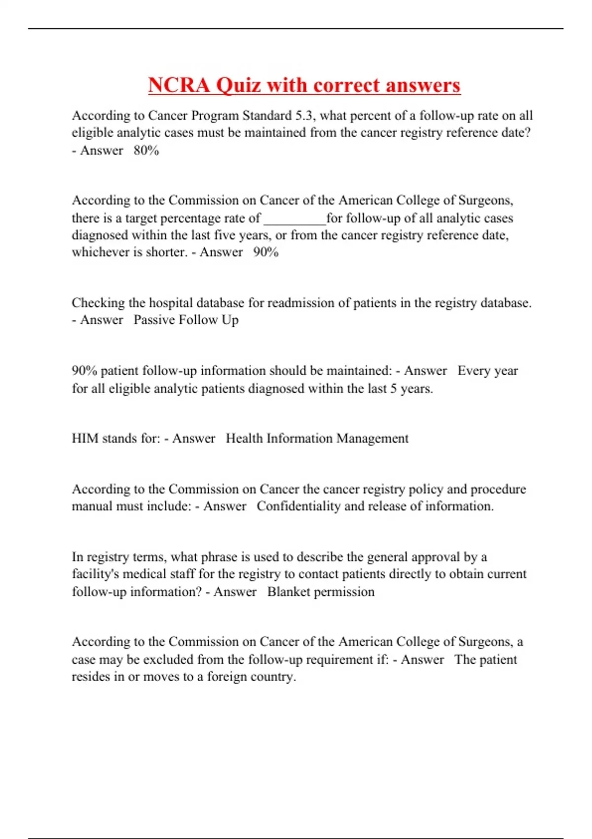 NCRA Quiz with correct answers
