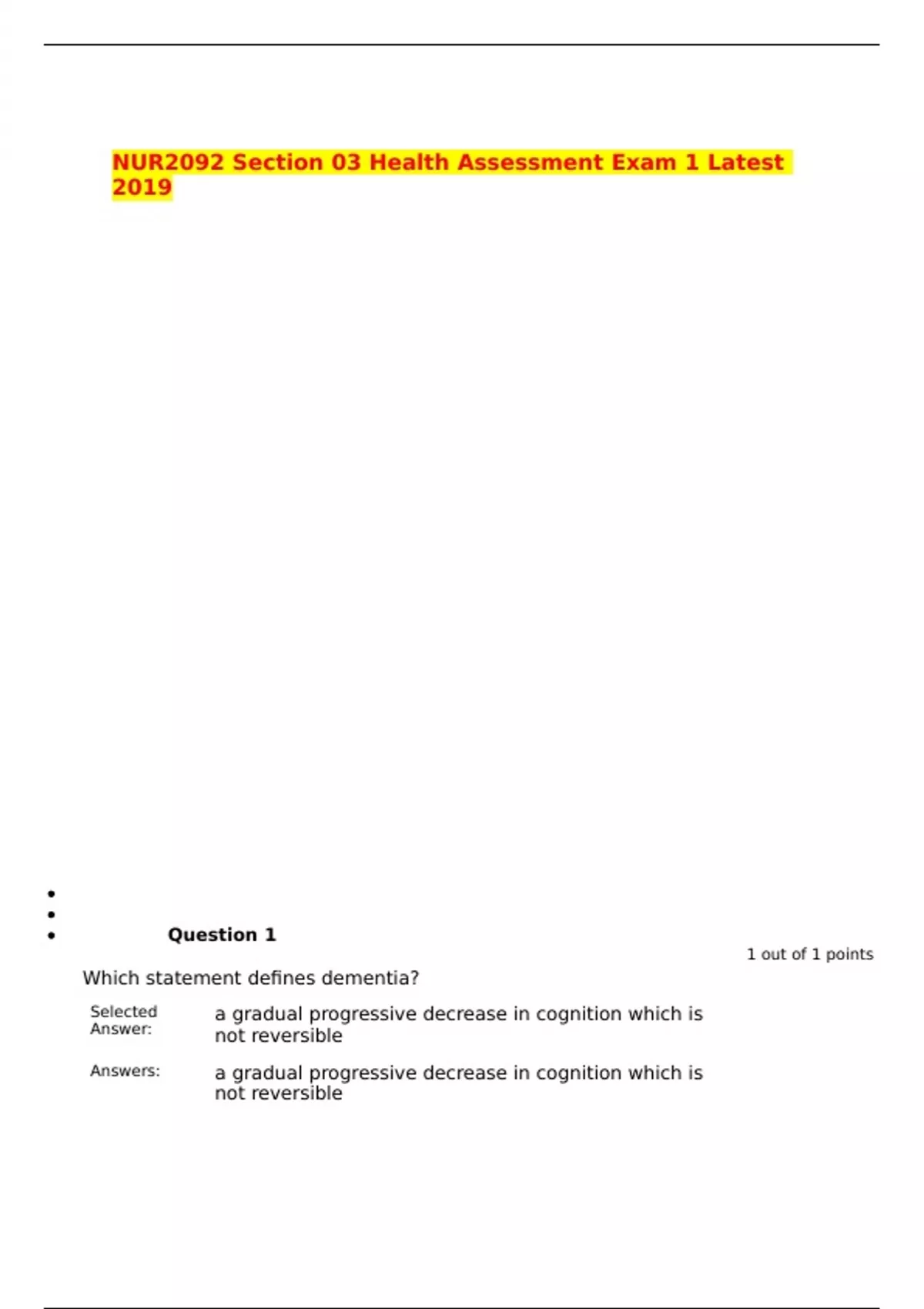 NUR2092 Section 03 Health Assessment Exam 1 Latest 2023