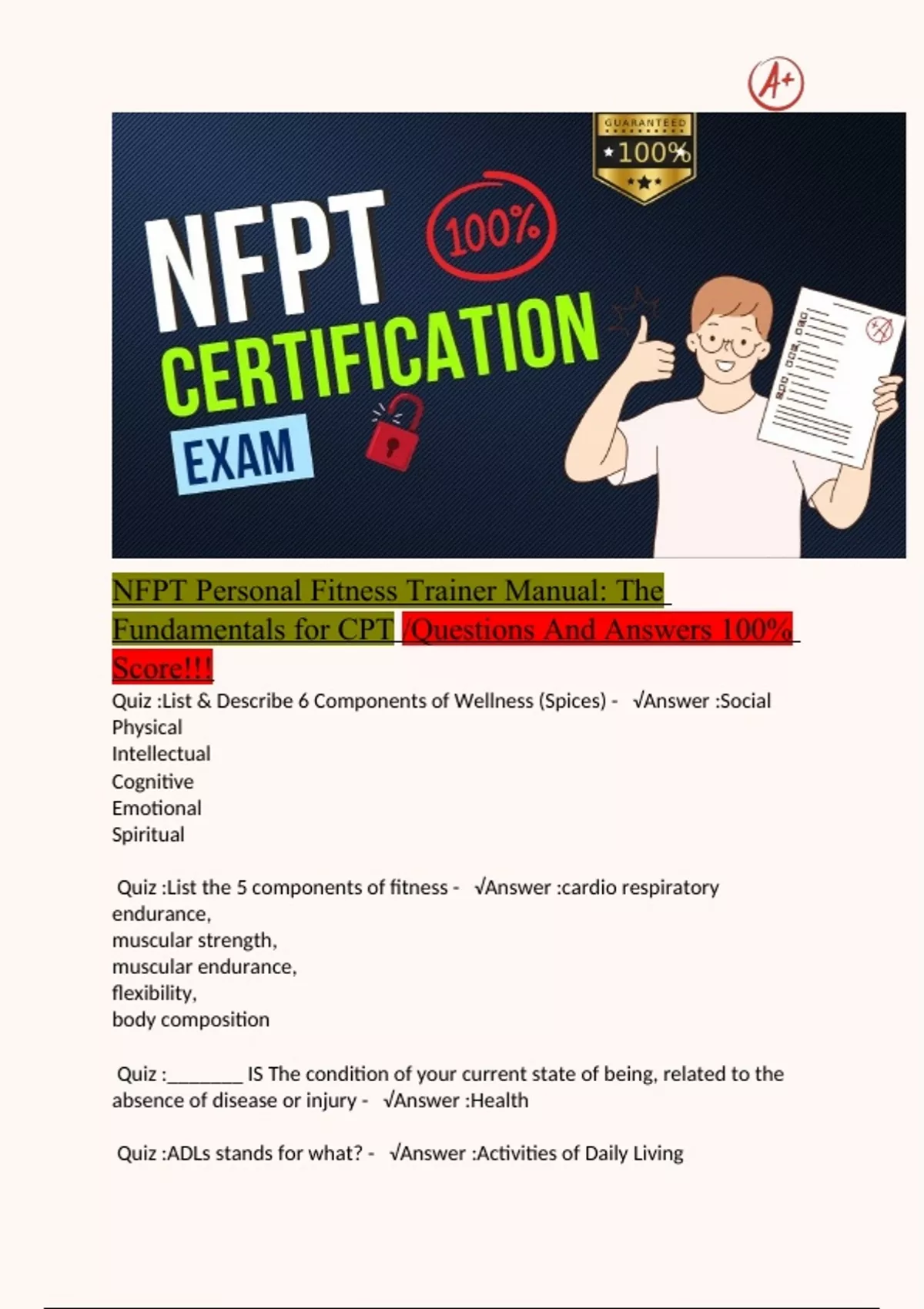 NFPT Personal Fitness Trainer Manual: The Fundamentals for CPT /Questions And Answers 100% Score!!!