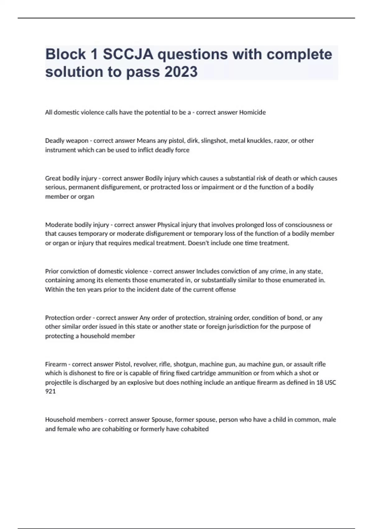 Block 1 SCCJA questions with complete solution to pass 2023