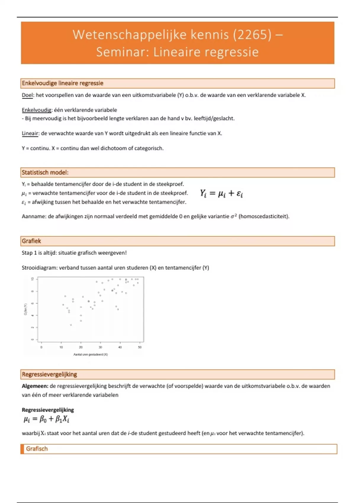 waarbij Xi staat voor het aantal uren dat de i-de student gestudeerd heeft (en 𝜇i voor het verwachte tentamencijfer).
