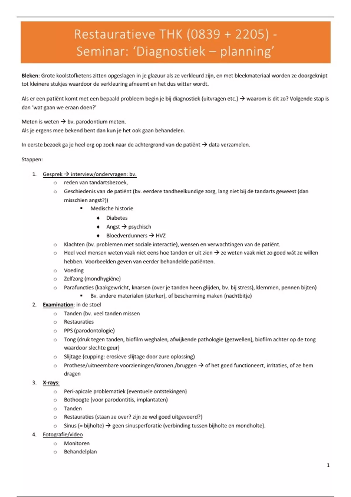 o Restauraties (staan ze over? zijn ze wel goed uitgevoerd?)