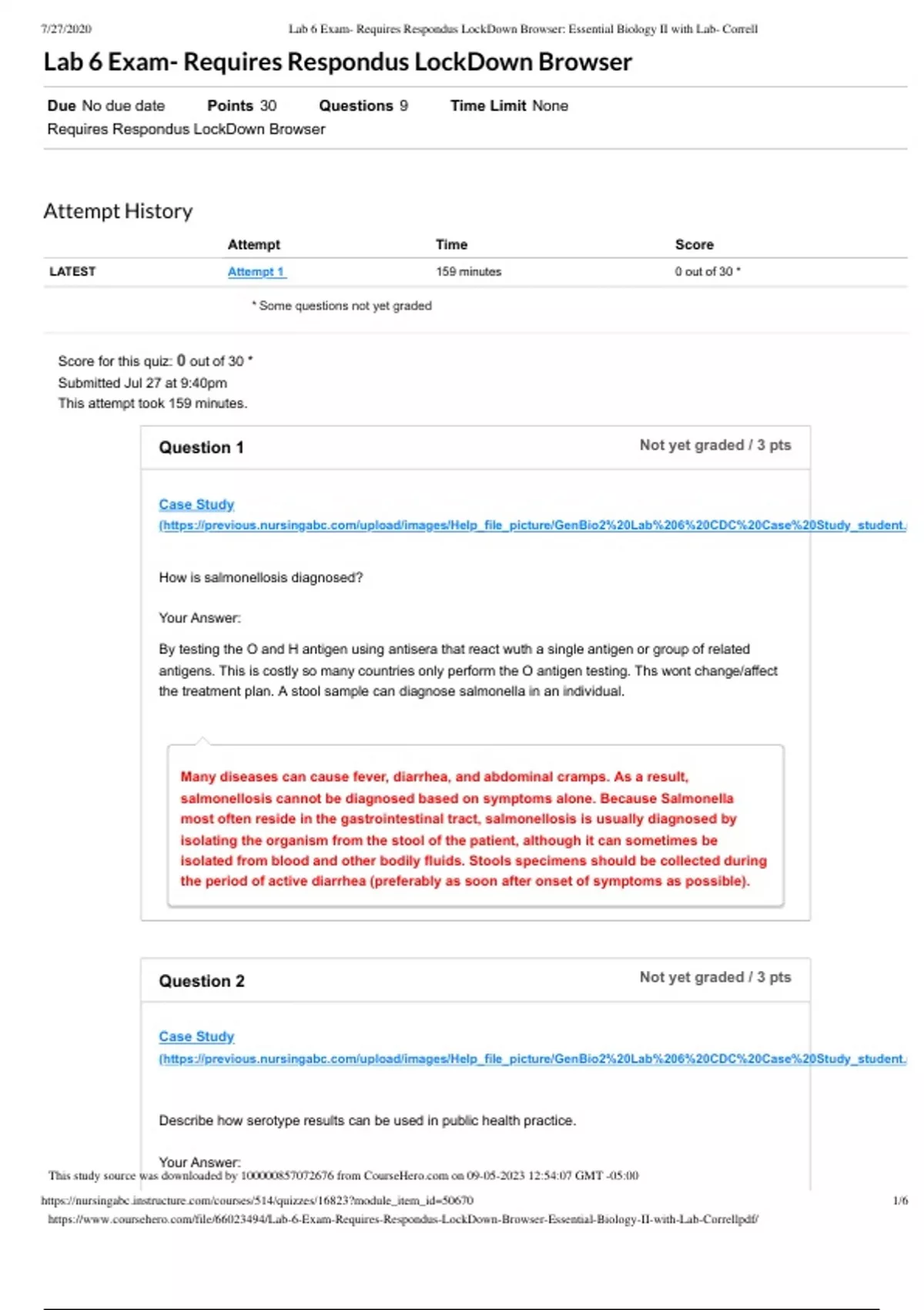 BIOD 102 Essential Biology II Lab 6 Exam- Portage Learning. Questions and Answers Latest (Verified Answers)