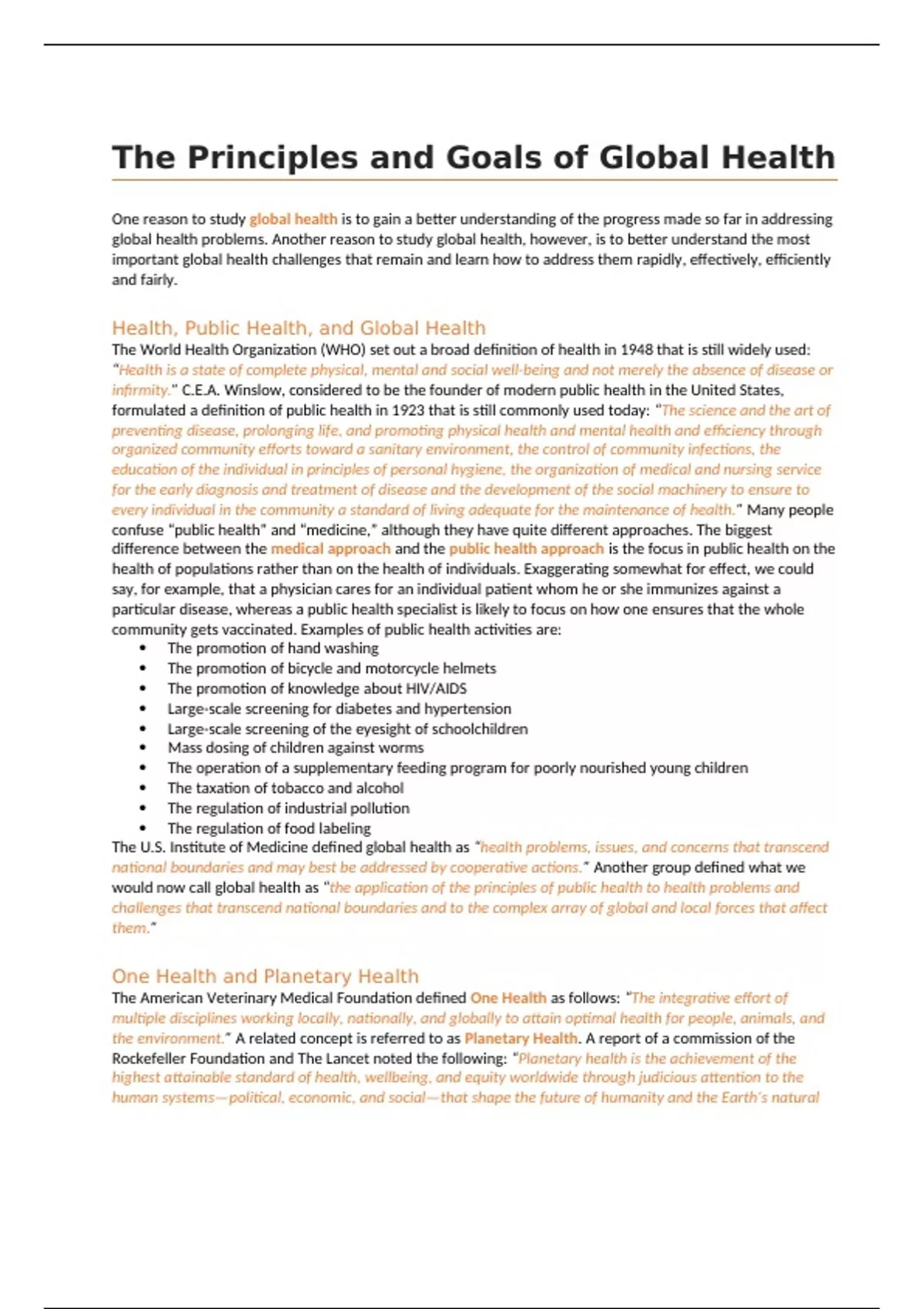 The Principles and Goals of Global Health