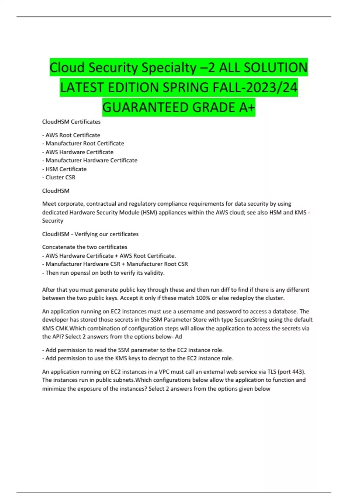 Cloud Security Specialty –2 ALL SOLUTION LATEST EDITION SPRING FALL-2023/24 GUARANTEED GRADE A+