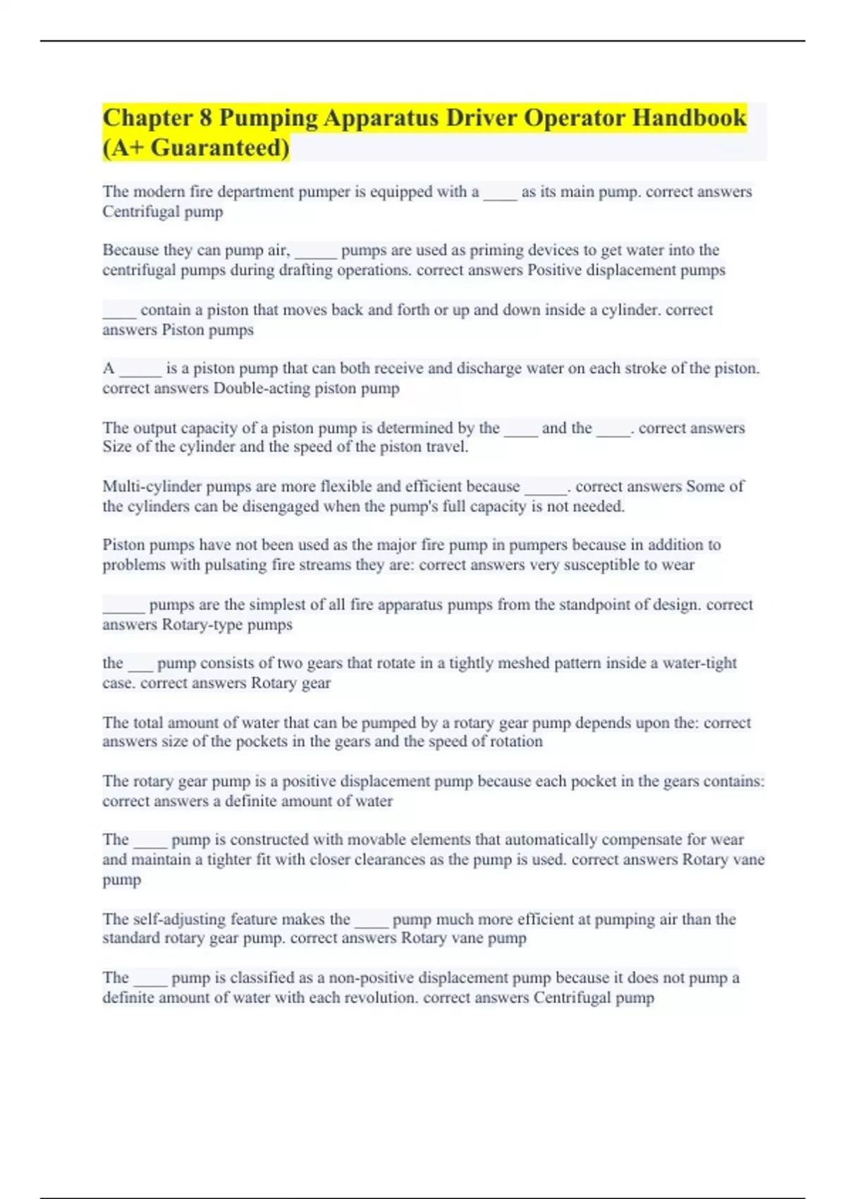 Chapter 8 Pumping Apparatus Driver Operator Handbook (A+ Guaranteed)