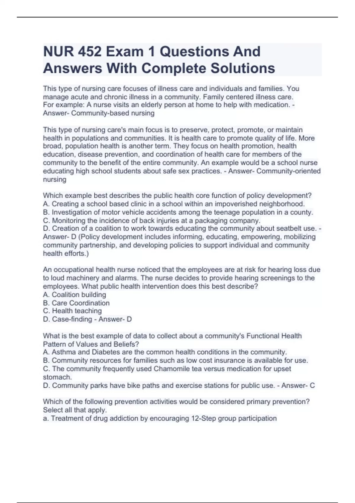 NUR 452 Exam 1 Questions And Answers With Complete Solutions