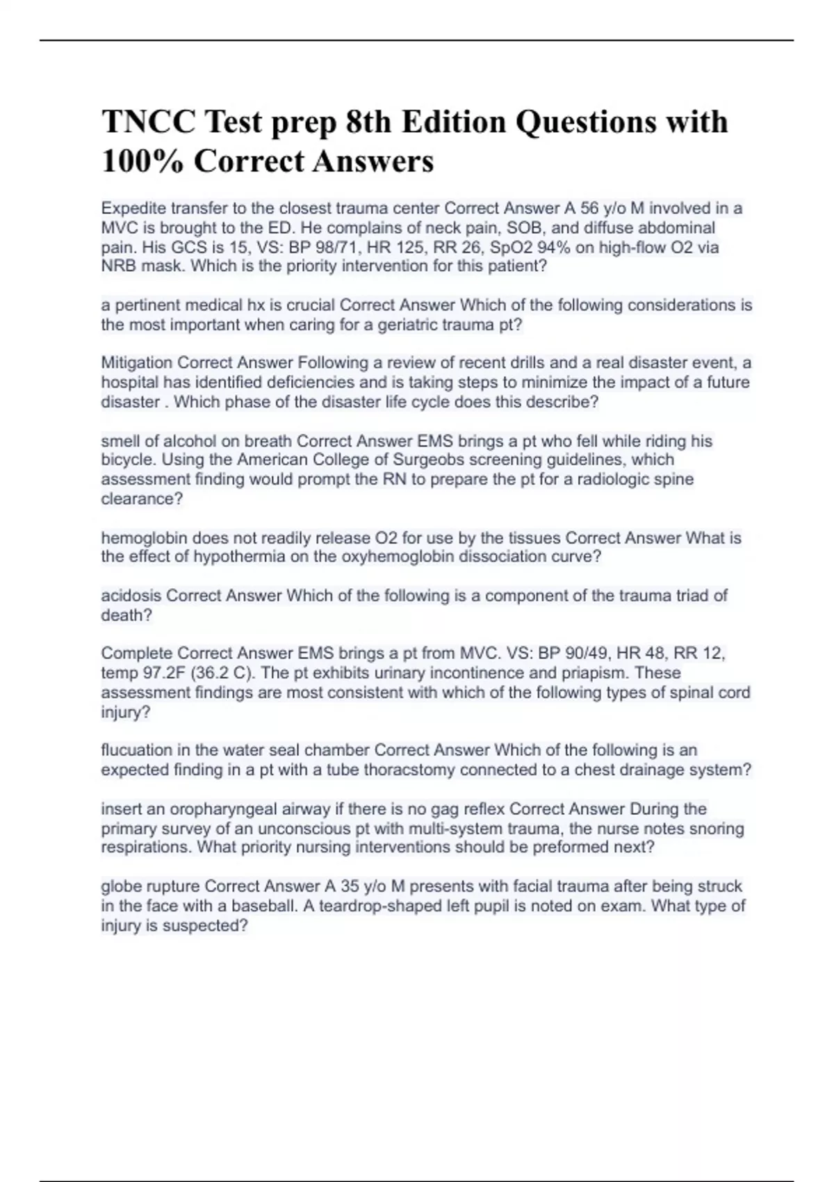 TNCC Test prep 8th Edition Questions with 100% Correct Answers