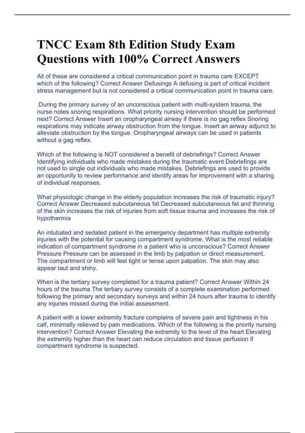TNCC Exam 8th Edition Study Exam Questions with 100% Correct Answers