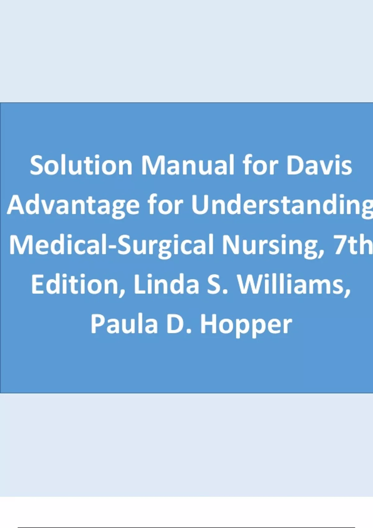 Solution Manual for Davis Advantage for Understanding Medical-Surgical Nursing, 7th Edition, Linda S. Williams, Paula D. Hopper