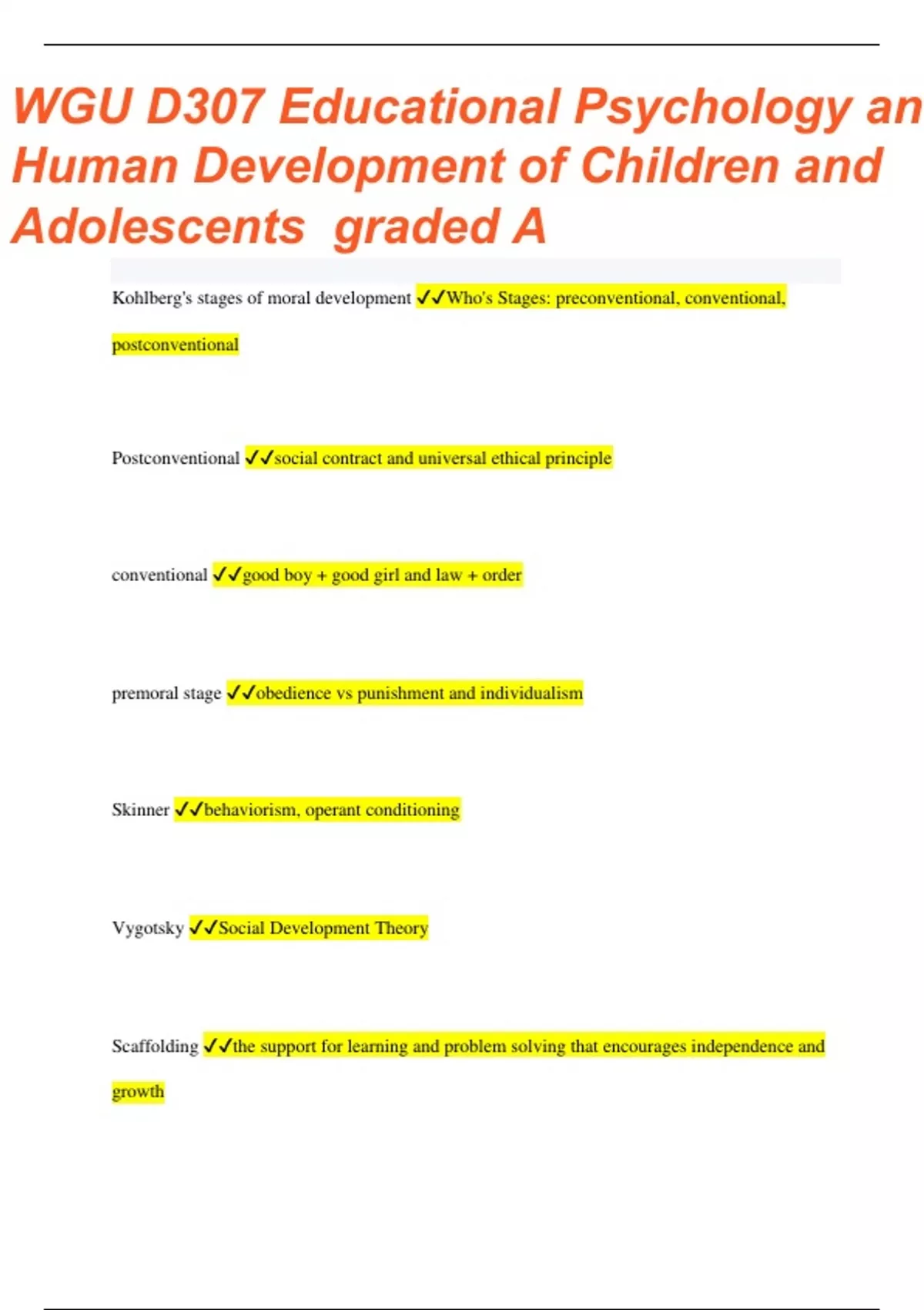 WGU D307 Educational Psychology and Human Development of Children and Adolescents Q&A Graded A