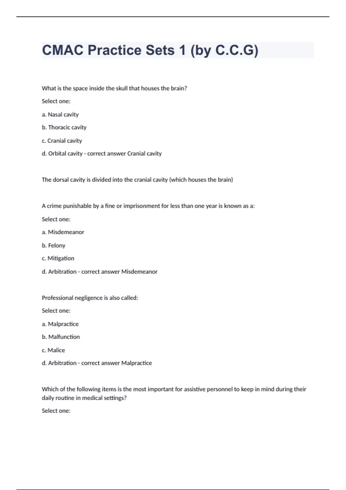 CMAC Practice Sets 1 (by C.C.G) question with answers graded A+ 2023