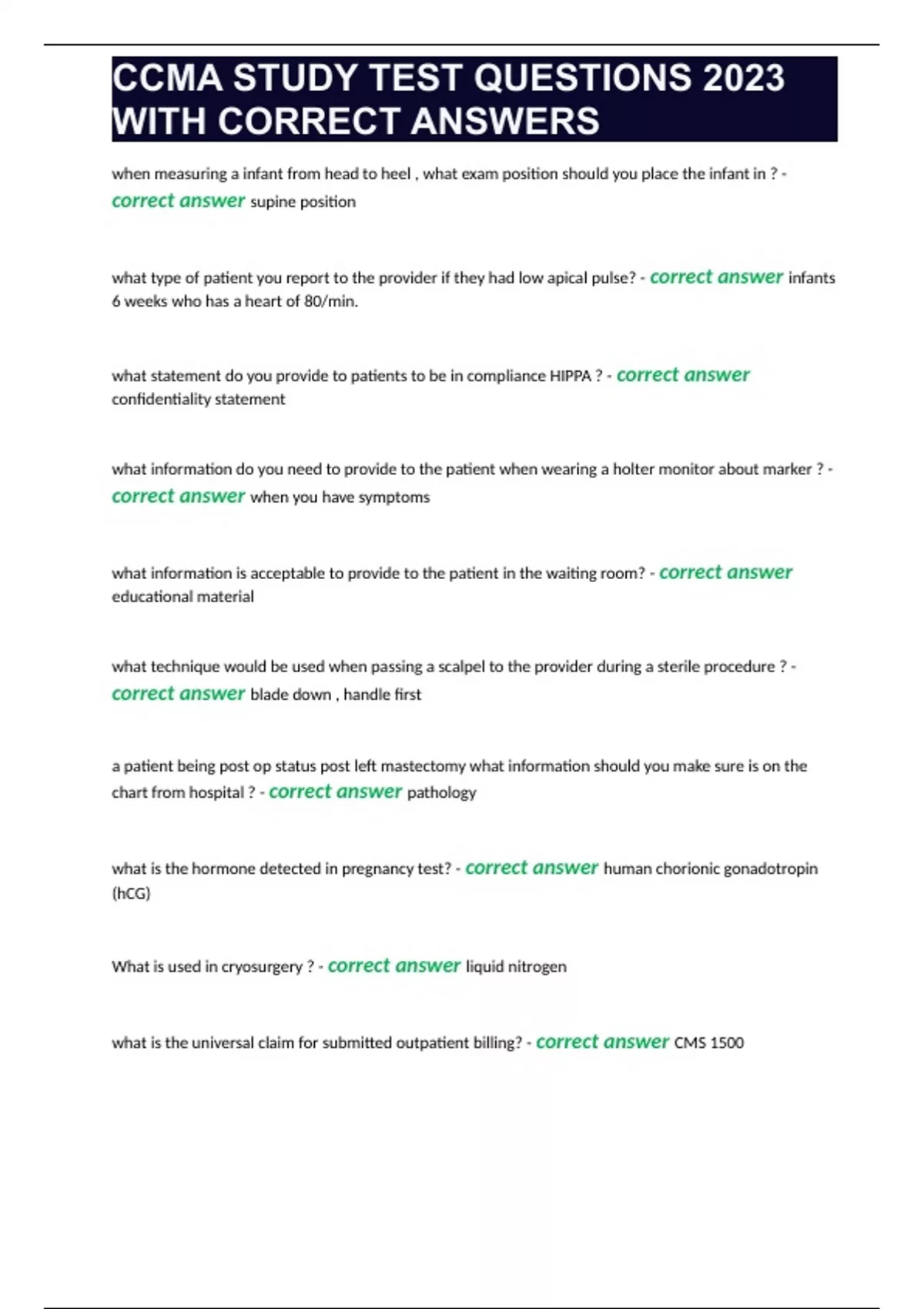 CCMA STUDY TEST QUESTIONS 2023 WITH CORRECT ANSWERS.docx