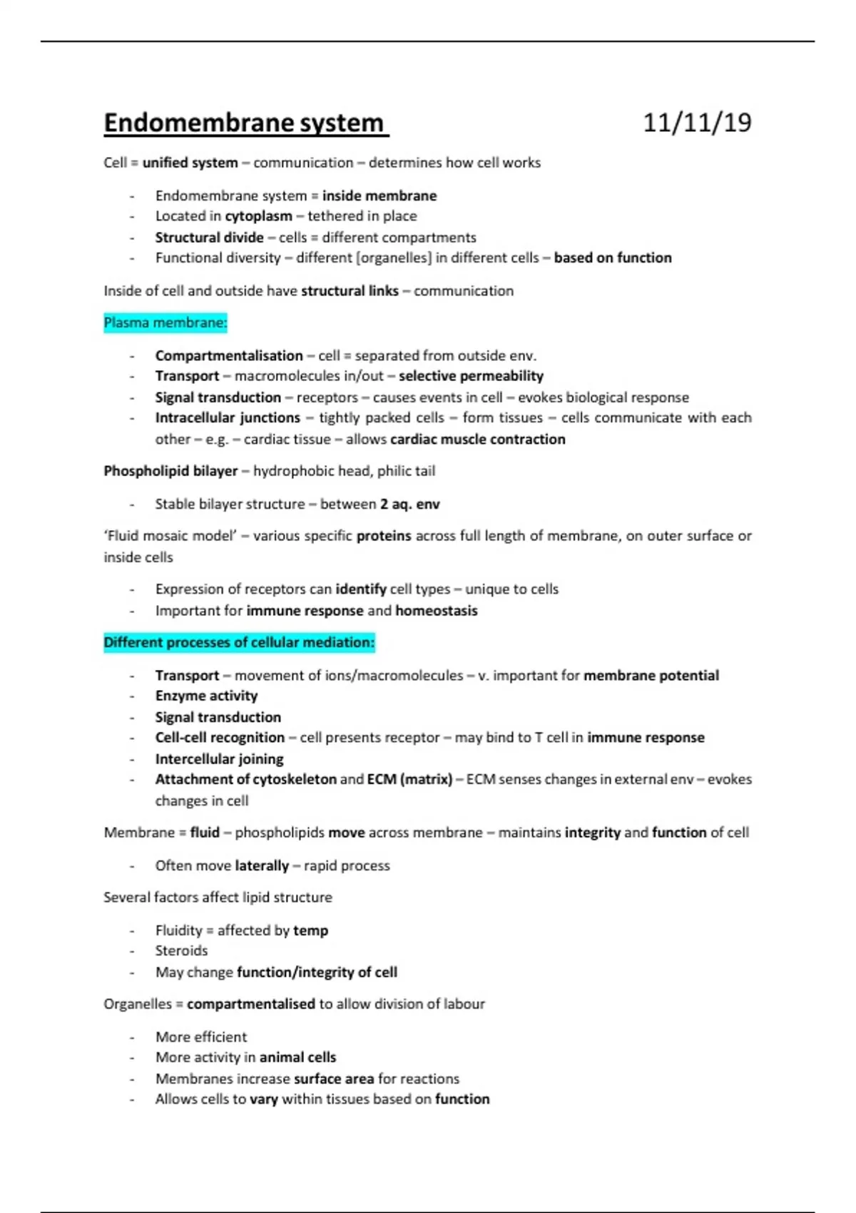 - Transport – movement of ions/macromolecules – v. important for membrane potential