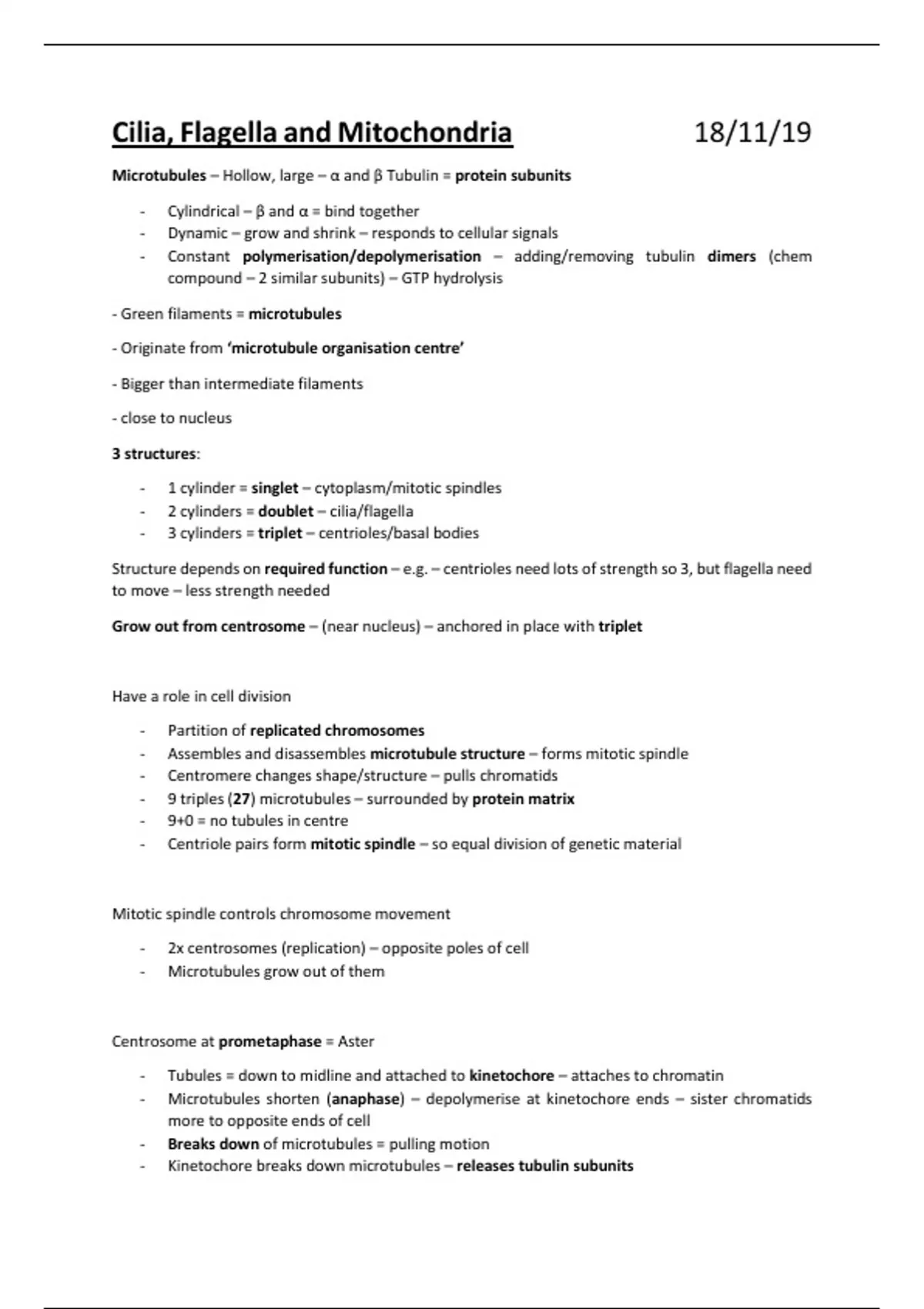 If you're studying a life science (e.g. - biomed, bioscience, physiology, sports science, sports physiology etc), then this detailed set of lecture notes on cilia and mitochondria will help you smash your first set of exams on cell/molecular biology! You'll need a good knowledge of this you'll cover cilia/flagella and mitichondria again in 2nd year (notably for physiology pathways). You'll also cover mitochondria again in more detail in 3rd year, so this set of notes will be invaluable to you not just in first year, but also in your second and final year as well!