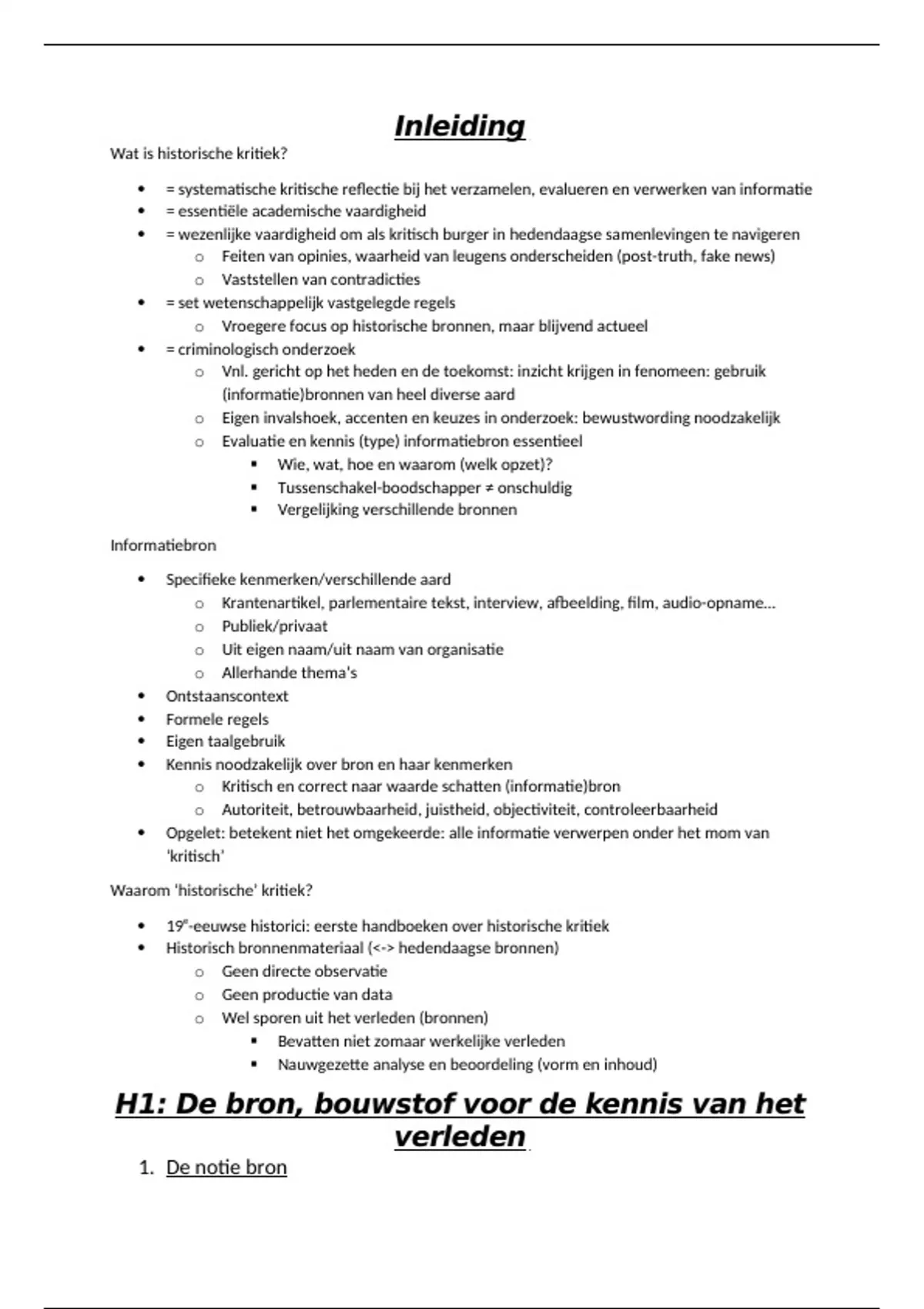 H1: De bron, bouwstof voor de kennis van het