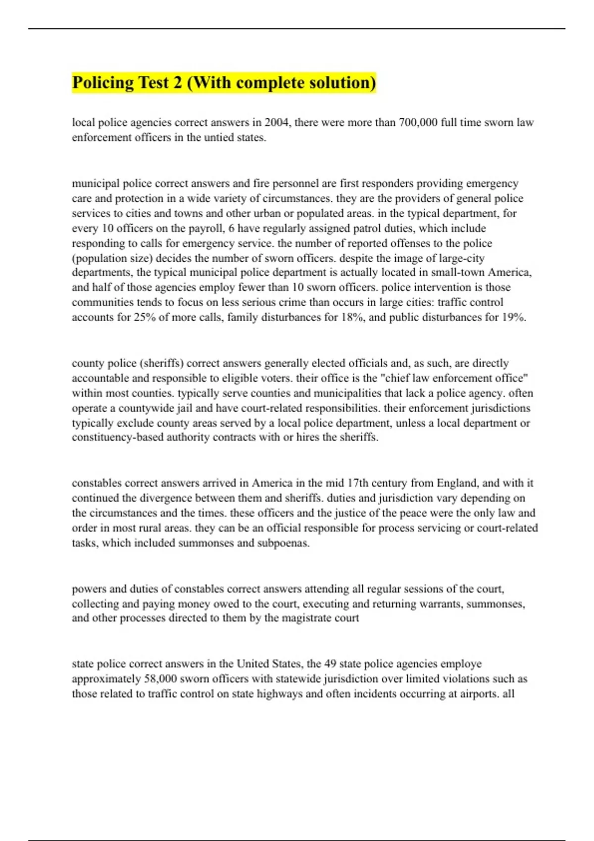 Policing Test 2 (With complete solution)