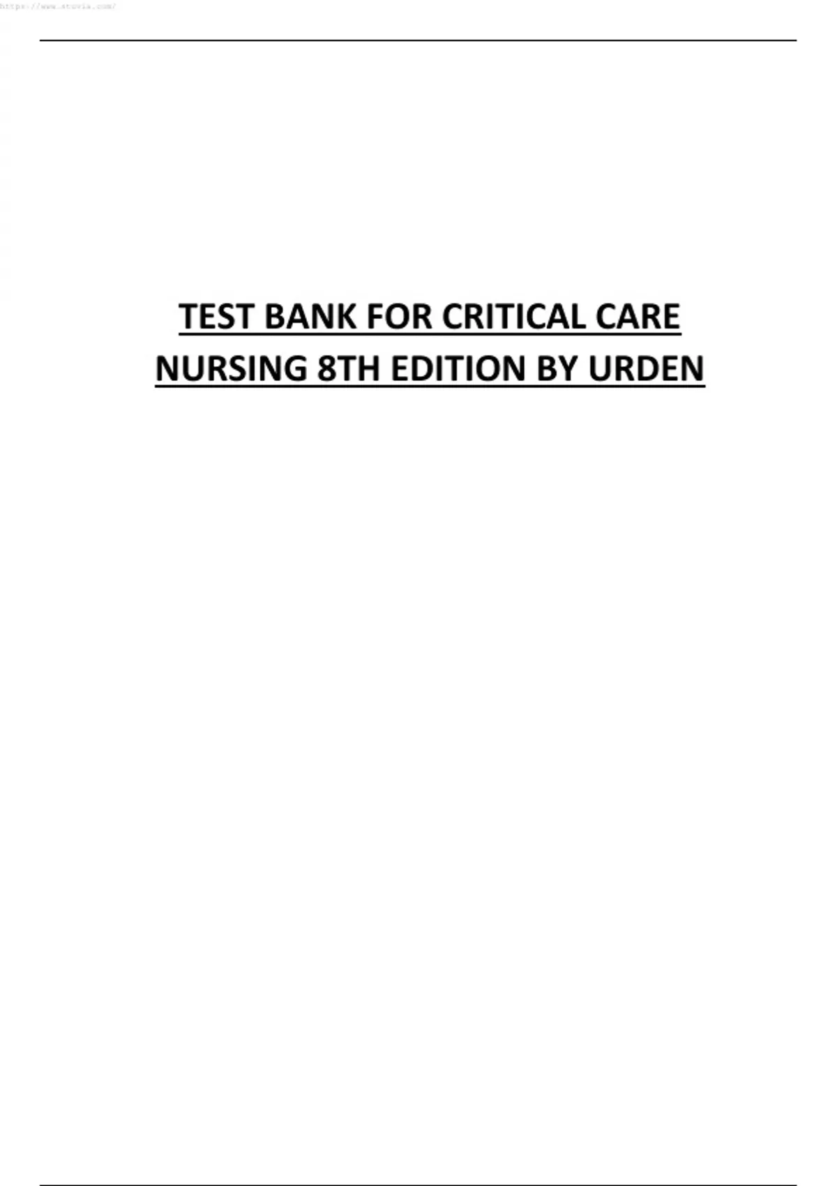 TEST BANK FOR CRITICAL CARE NURSING 8TH EDITION BY URDEN.