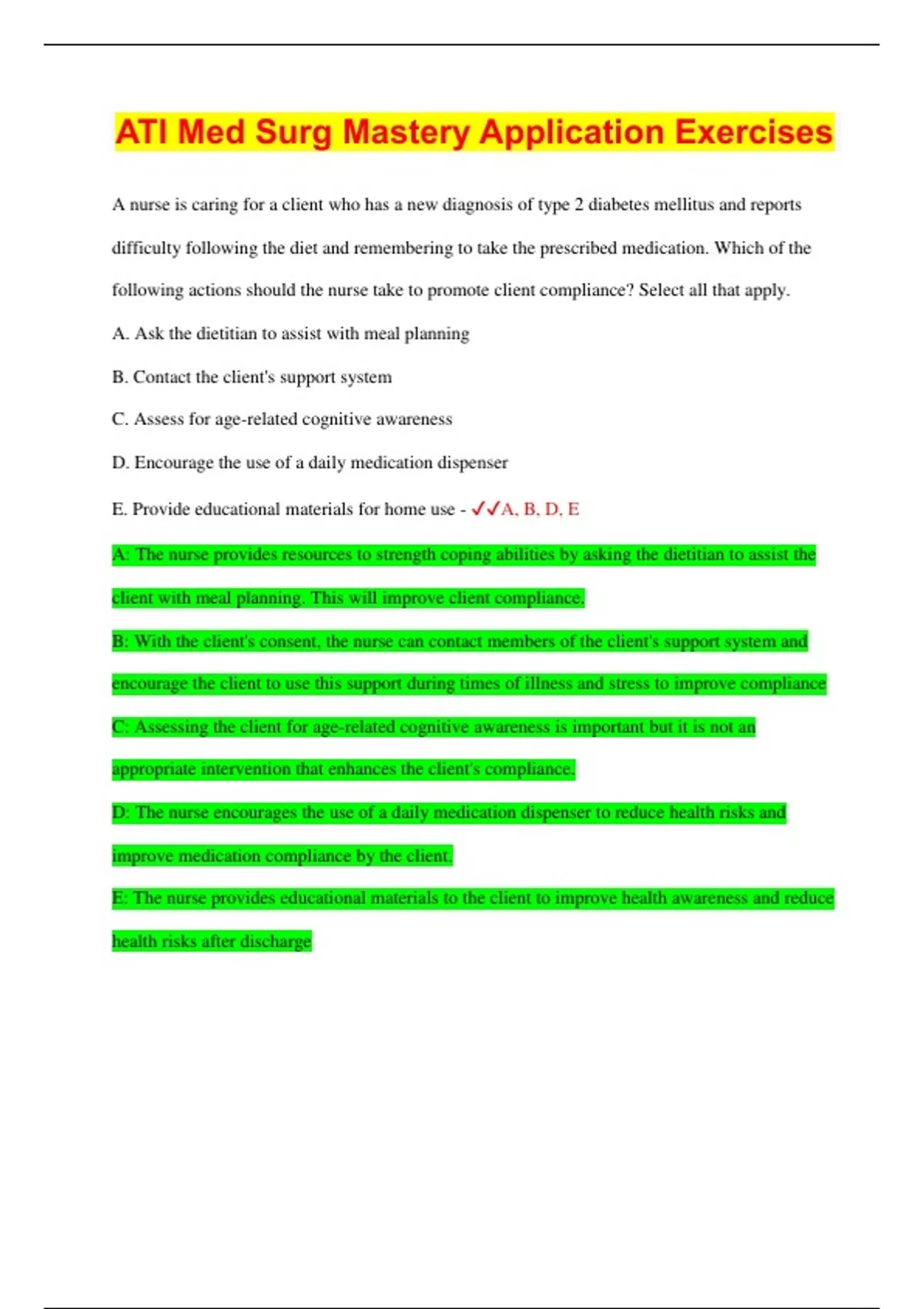 ATI Med Surg Mastery Application Exercises 2023 | 100% Correct Answers | Updated & Verified | 33 Pages